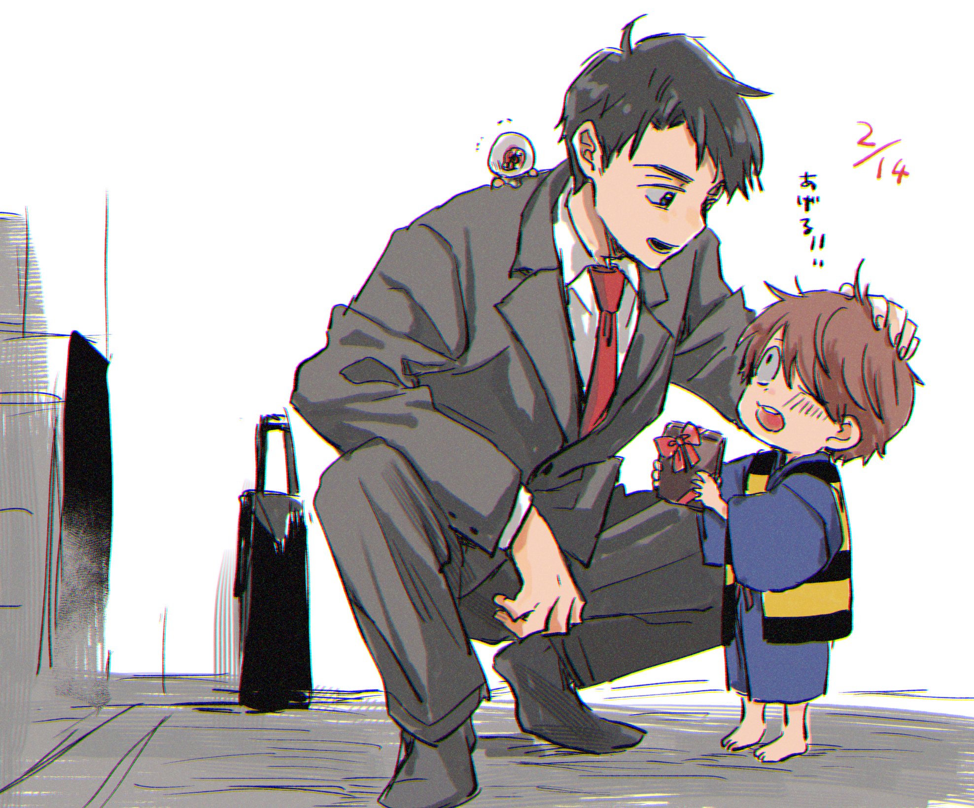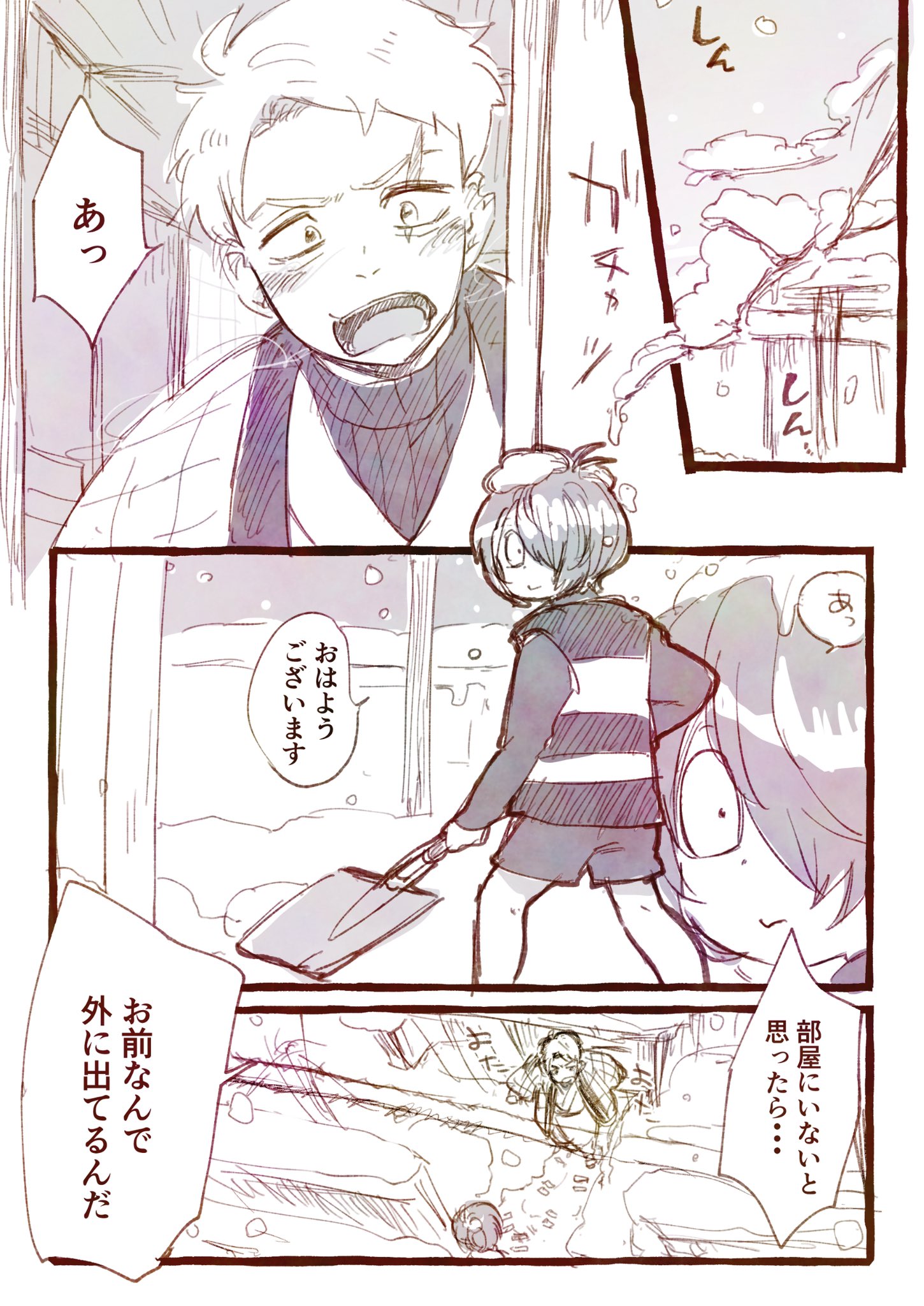明明是下雪但看起來暖暖的養父子☺
