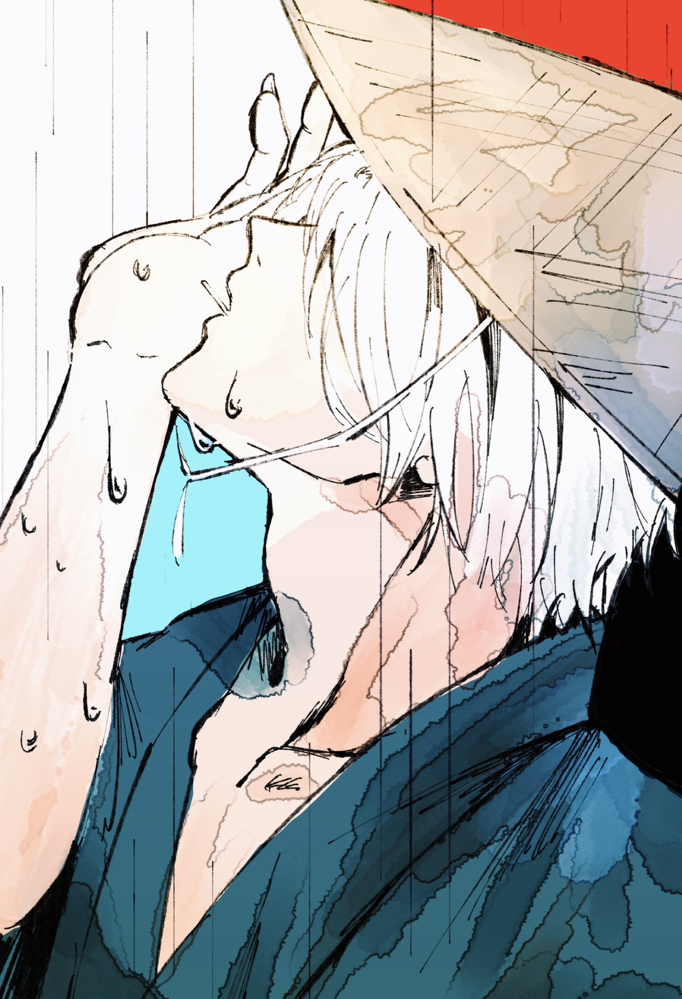 眼淚是落在小鬼太郎的臉頰上....