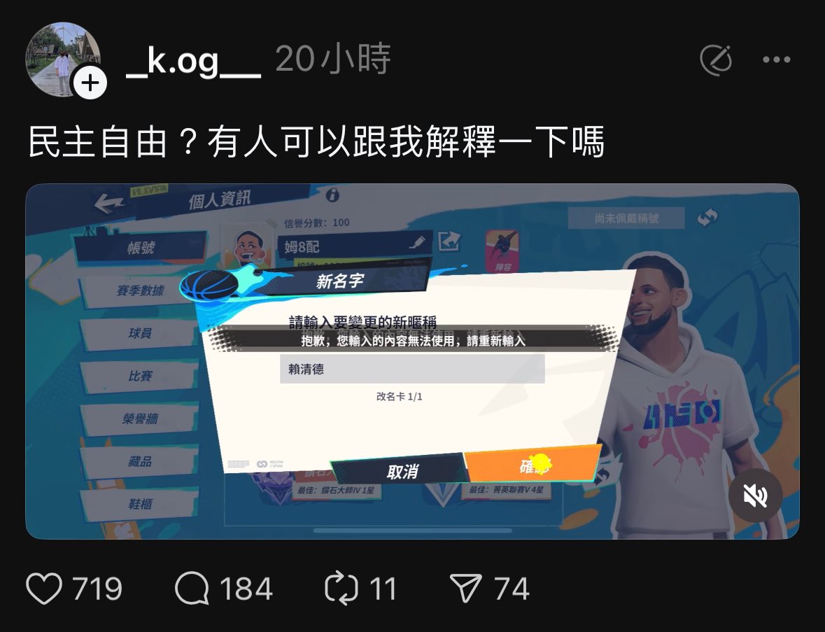 原因是他在中國遊戲想取名叫做賴清德但是因為中國敏感詞原因無法使用。