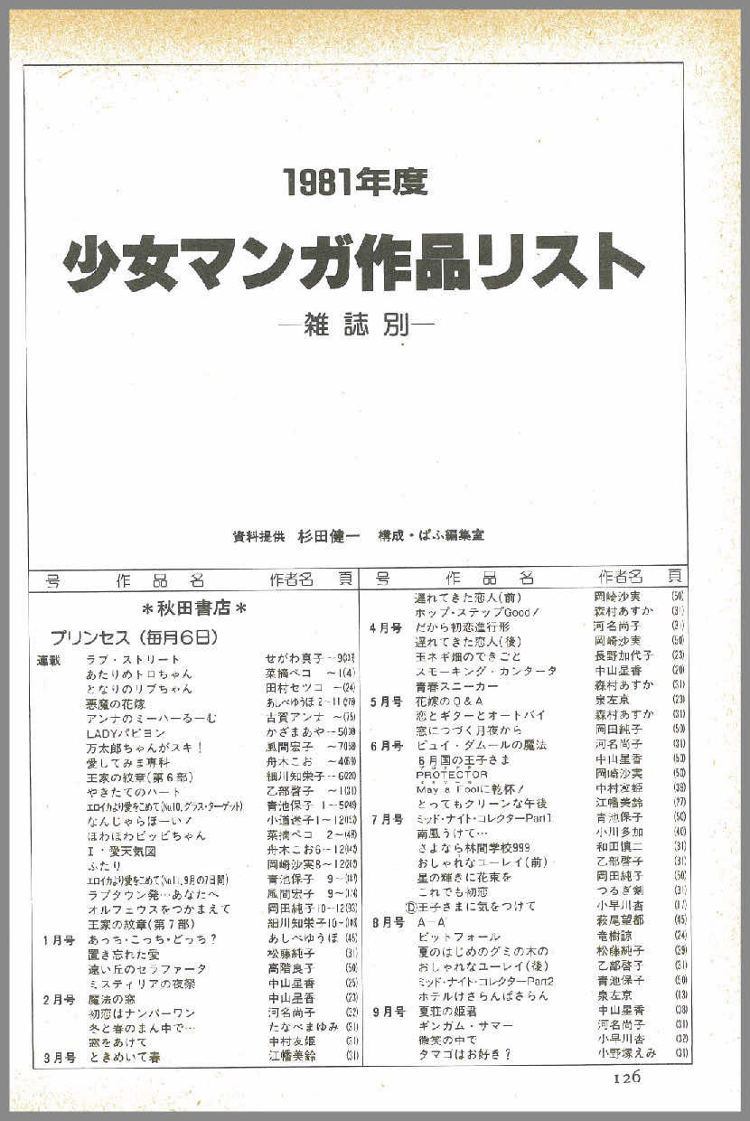 米沢嘉博記念図書館|『ぱふ』各年度版「まんが作品...
