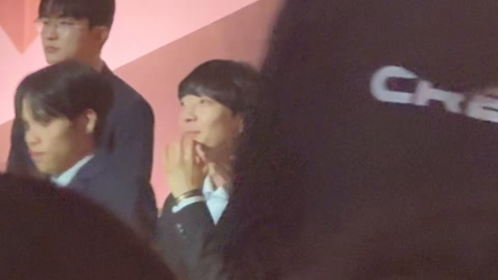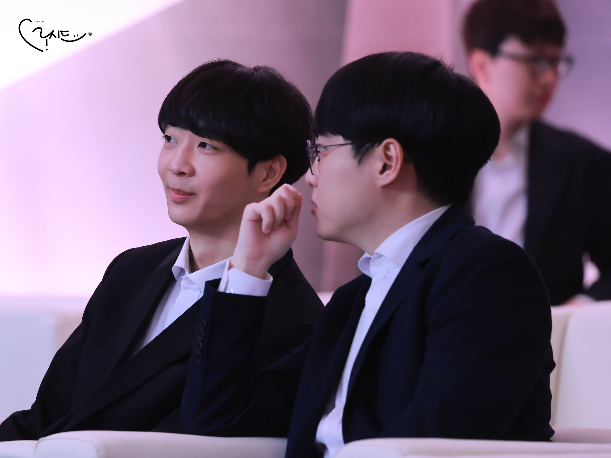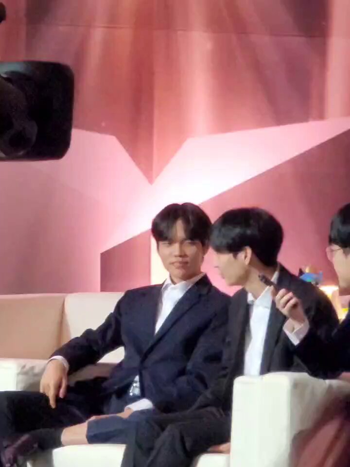 不知道他們聊到什麼,許秀突然用右手去摸容赫的下頷,然後把臉稍微提起來一點,左右看了一下。手離開之後,容赫拉起許秀的右手,把他的手拉近自己然後親吻了他的手背(????)接著、接著就親到指尖⋯⋯指尖