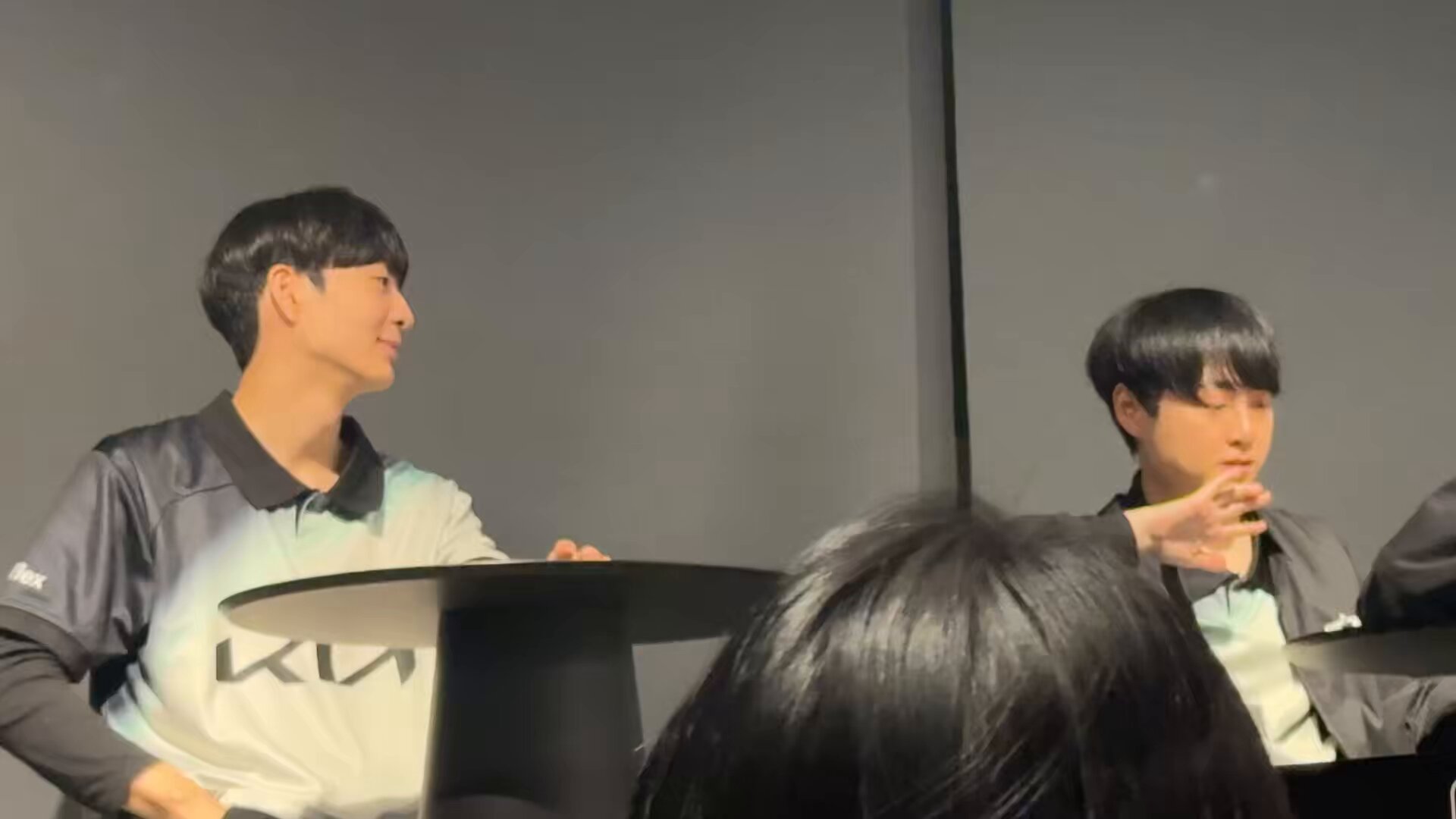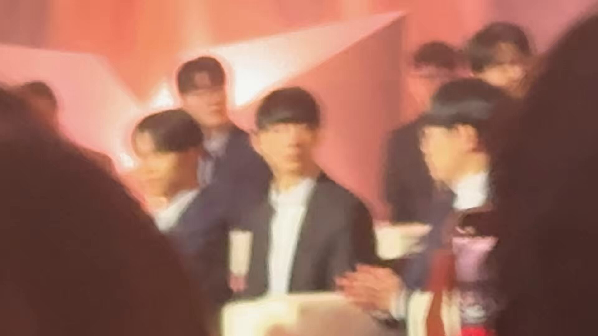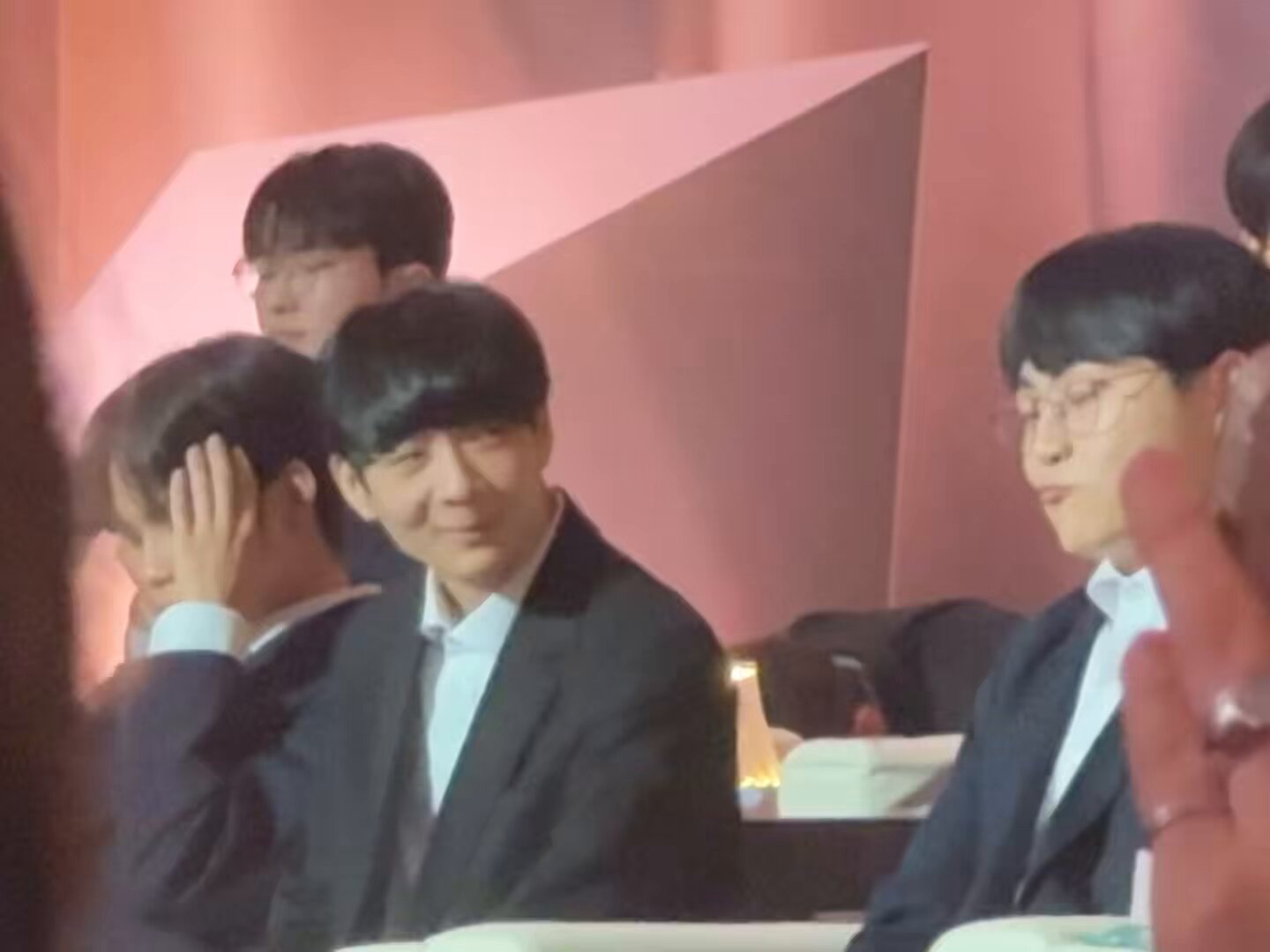 不知道他們聊到什麼,許秀突然用右手去摸容赫的下頷,然後把臉稍微提起來一點,左右看了一下。手離開之後,容赫拉起許秀的右手,把他的手拉近自己然後親吻了他的手背(????)接著、接著就親到指尖⋯⋯指尖