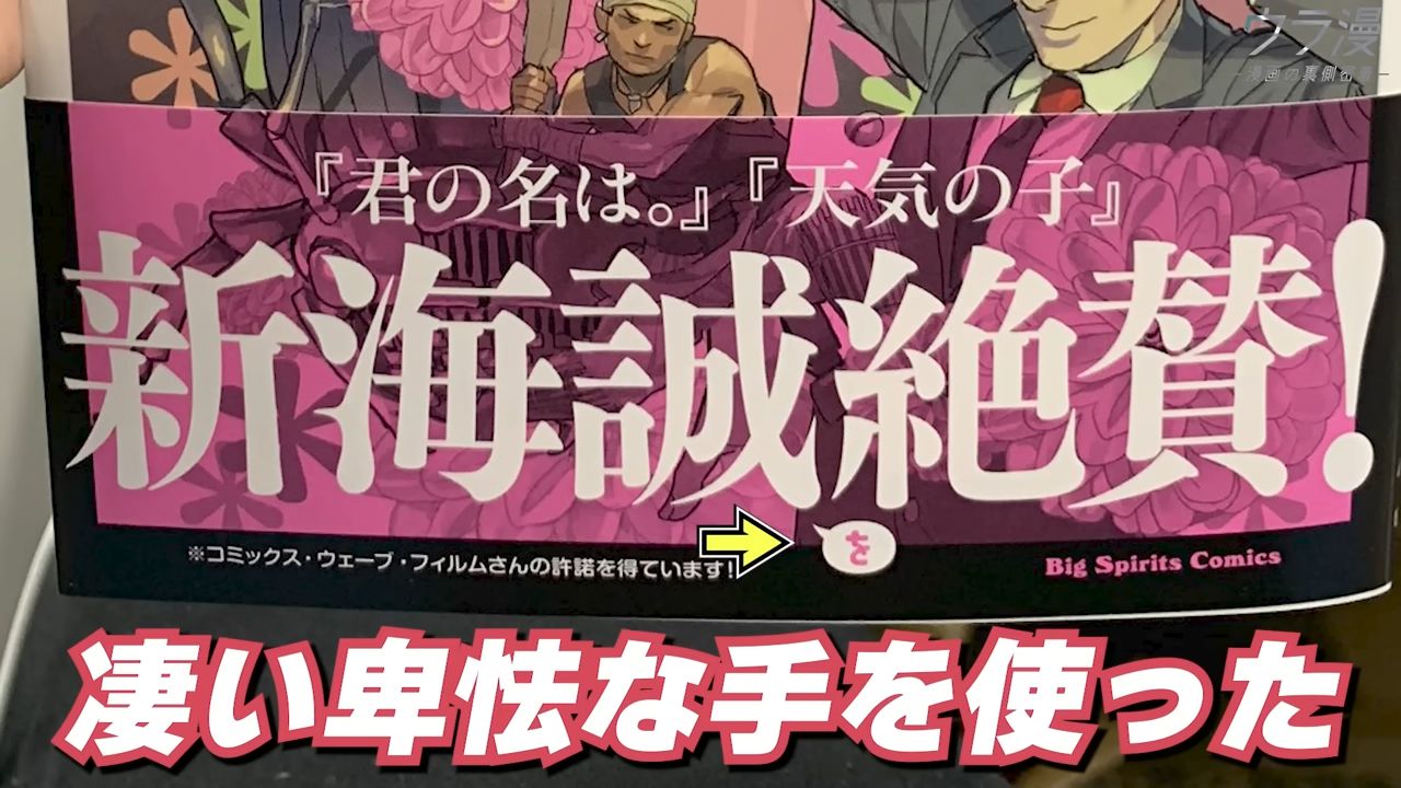 因為裡面有大讚新海誠的電影,書腰想到一招:寫「新海誠を絕贊」,把"を"字縮超小,讓人誤以為真的是新海誠在讚賞這本漫畫