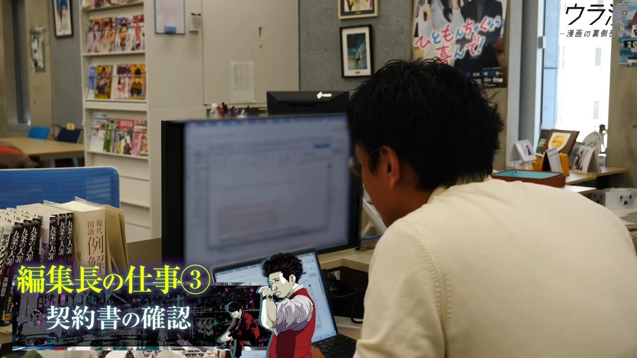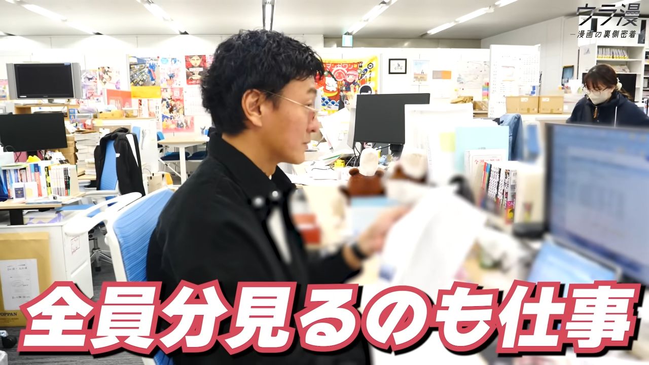 MangaOne主編的職場紀錄影片…漫畫編輯工作影片之前就有,但主編(主要工作已經不是面對個別漫畫家)在做什麼這還第一次看到