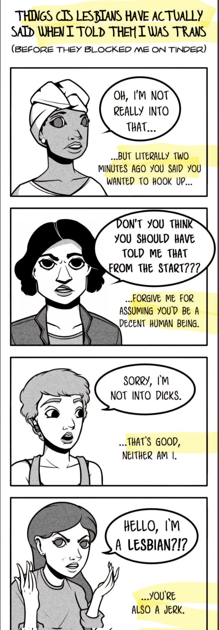 「男漫畫家創作了一個視覺作品以記錄下了當他試圖強迫女同性戀者發生她們不想要的性行為時,她們如何拒絕他。