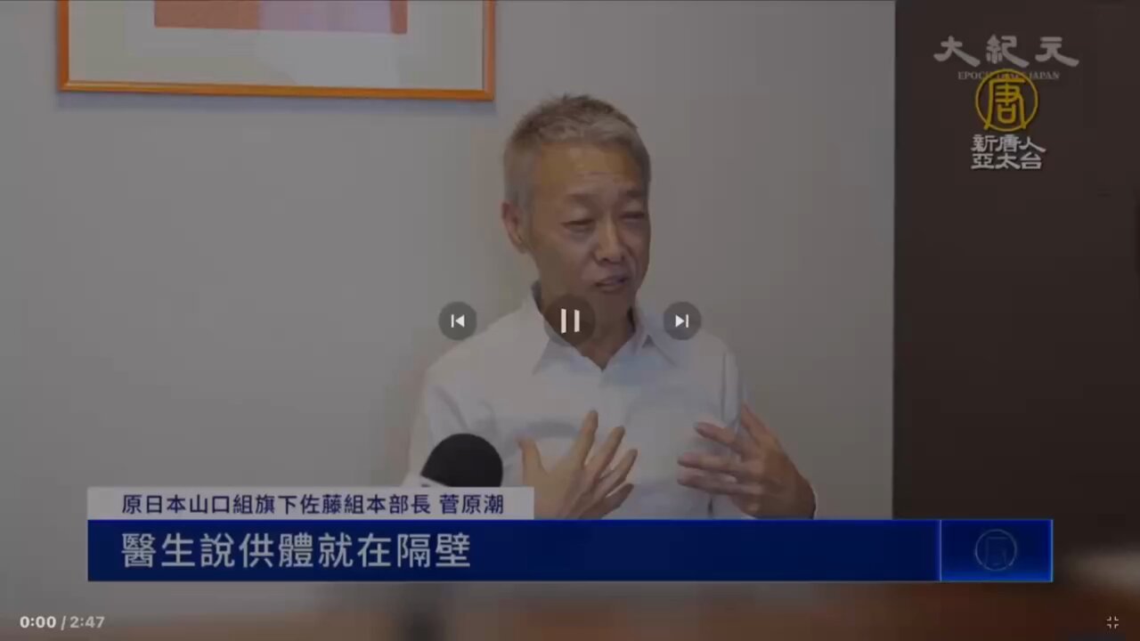 日本前黑幫幹部的友人的哥哥在仲介的介紹下,在一個月內等到21歲年輕人的肝,還沒死,被藥物控制,手腳的肌腱都被切斷,一是防止人逃跑,二是人會緊張,身體捲縮會影響器官的品質。他問年輕人幹壞事了? 中國醫生說他是恐怖組織,死刑犯。所以他們不覺得做錯了什麼,只認為在處理死刑犯