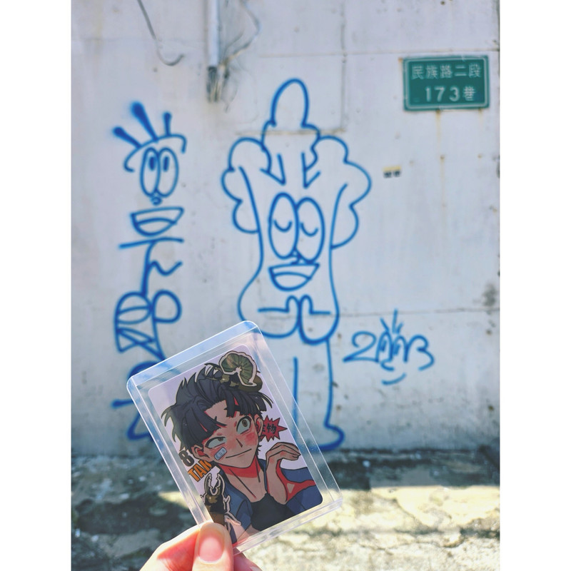 去影院途中看見的「當下即是」,文字很特別、很好看,就跟八左衛門一起拍照