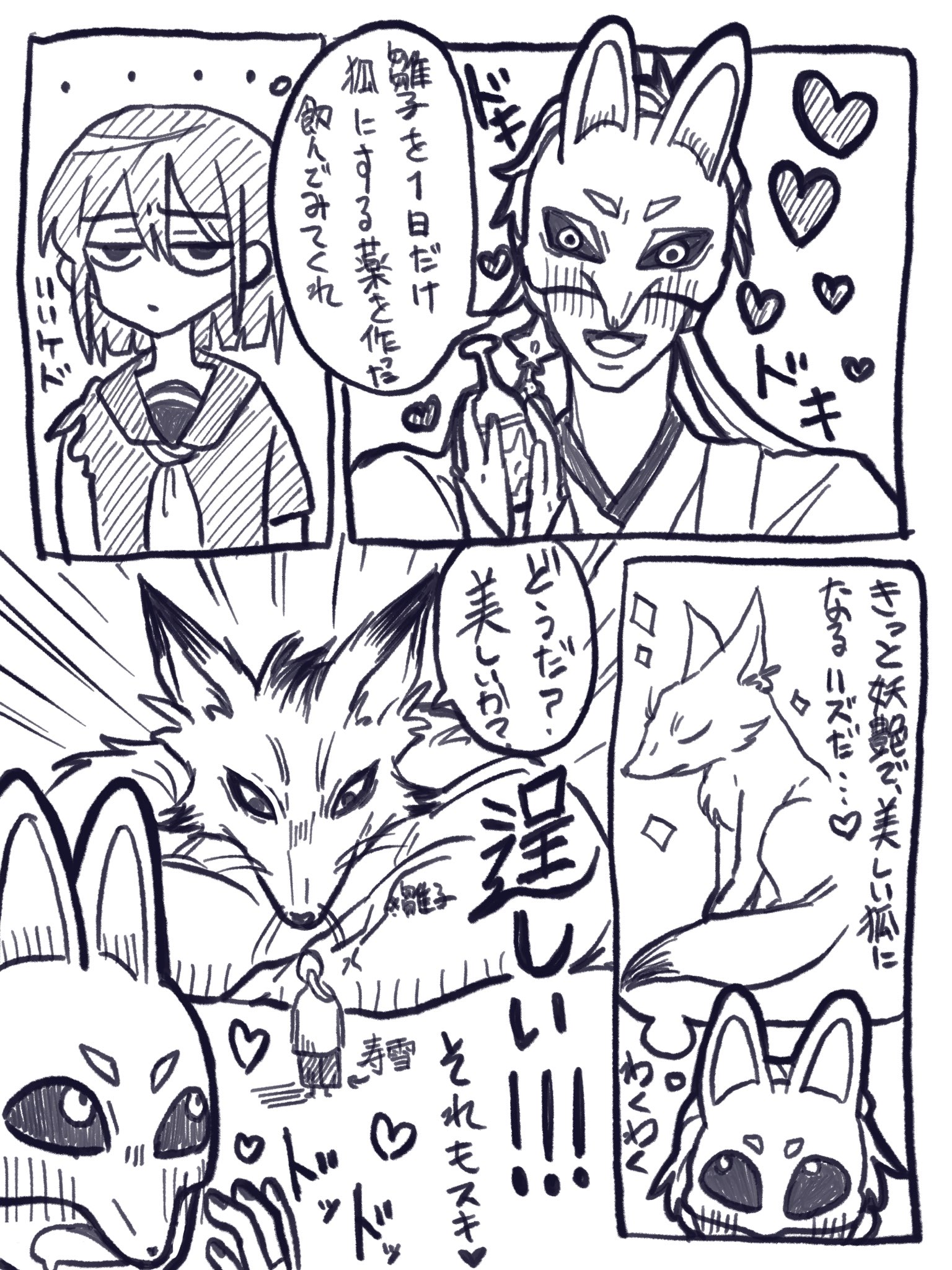 tofu7160: 想起來的確耶,狐面男×狐之雛子,壽幸×雛子,話說還有小朋友版的www,不過壽幸還有多一個七尾狐的型態