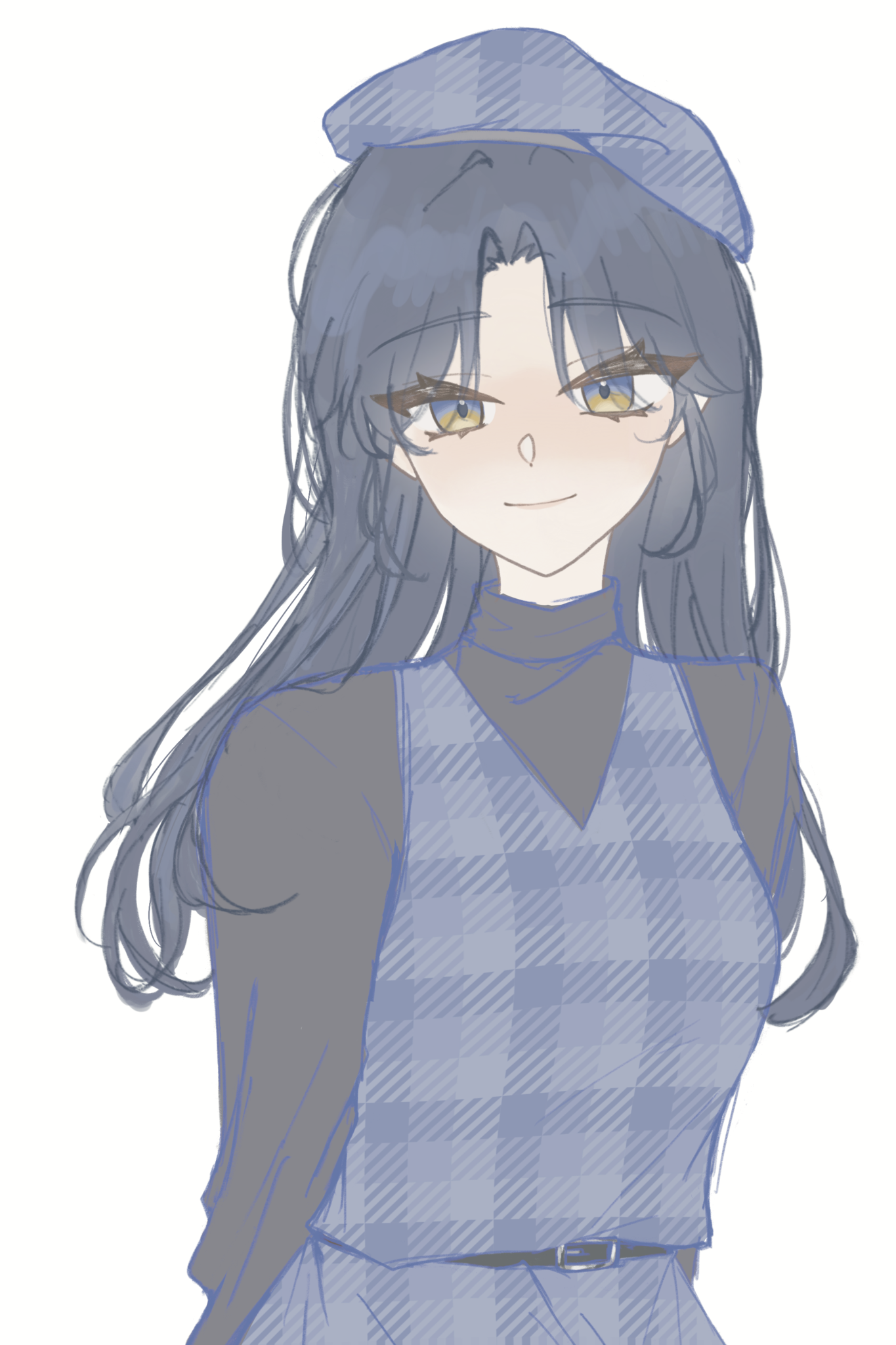 髮色是深藍,彩度比較低。