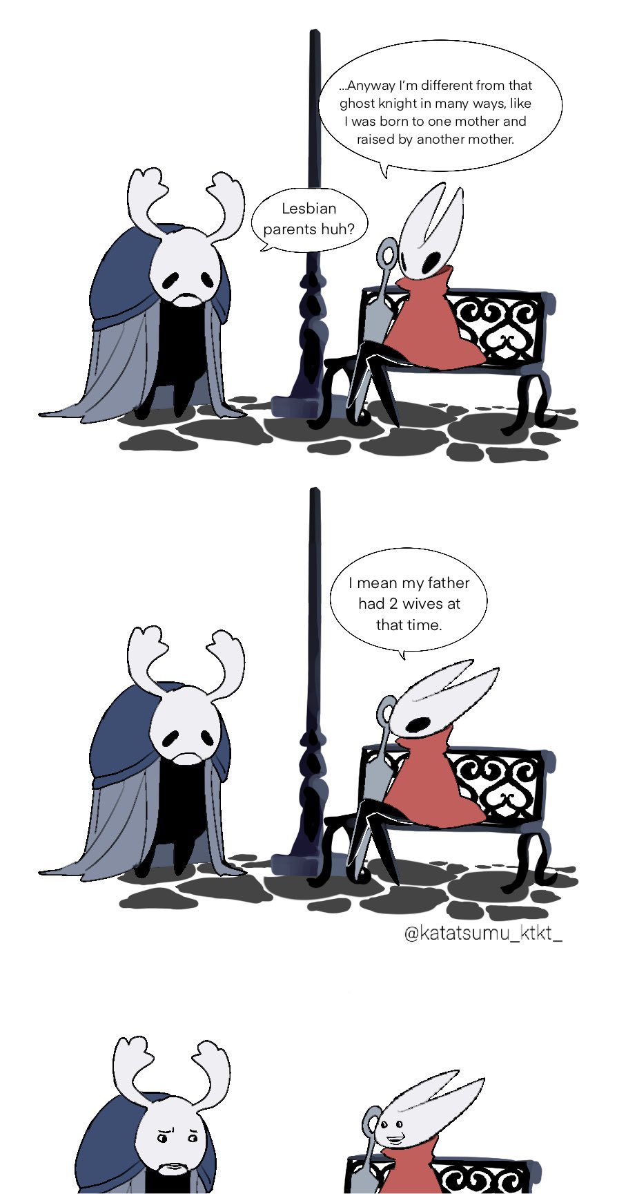 看小騎士初見姐姐追了大半張圖過去第一句話就是開打,暴力可以解決很多容器問題當然還可以解決你.jpg,到後來二見依然第一句話就開打,這次不僅隨手扔暗器還有很兇的格擋反擊,完全就是用暴力說話(???)的人設嘛…………