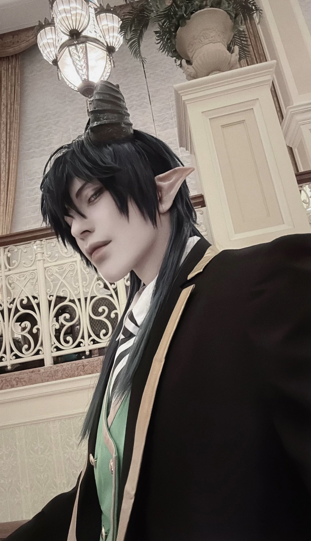 半夜收桌子看到那個很像莉的側紗,拿來搭配一下,確實很莉也配得很好看但我還有點過不了現實那關,腿好赤裸……!