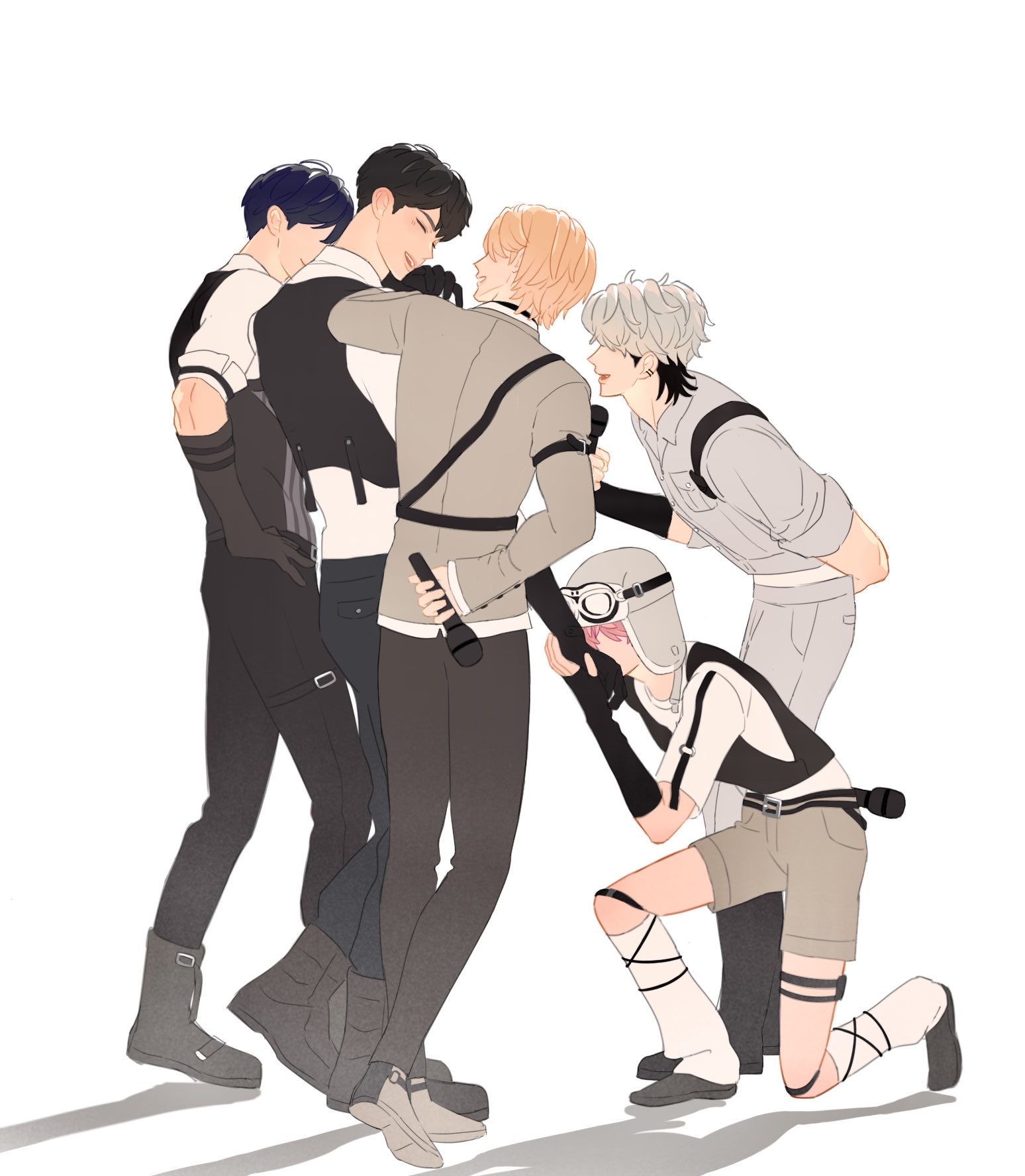 南藝俊自從開了第一槍助けて,後面成員像是調侃一樣接著做,超愛五人這樣的氛圍,尤其斑比在做完裝帥王子情節後自己尷尬三秒,然後就接著做助けて的動作救場我直接笑瘋