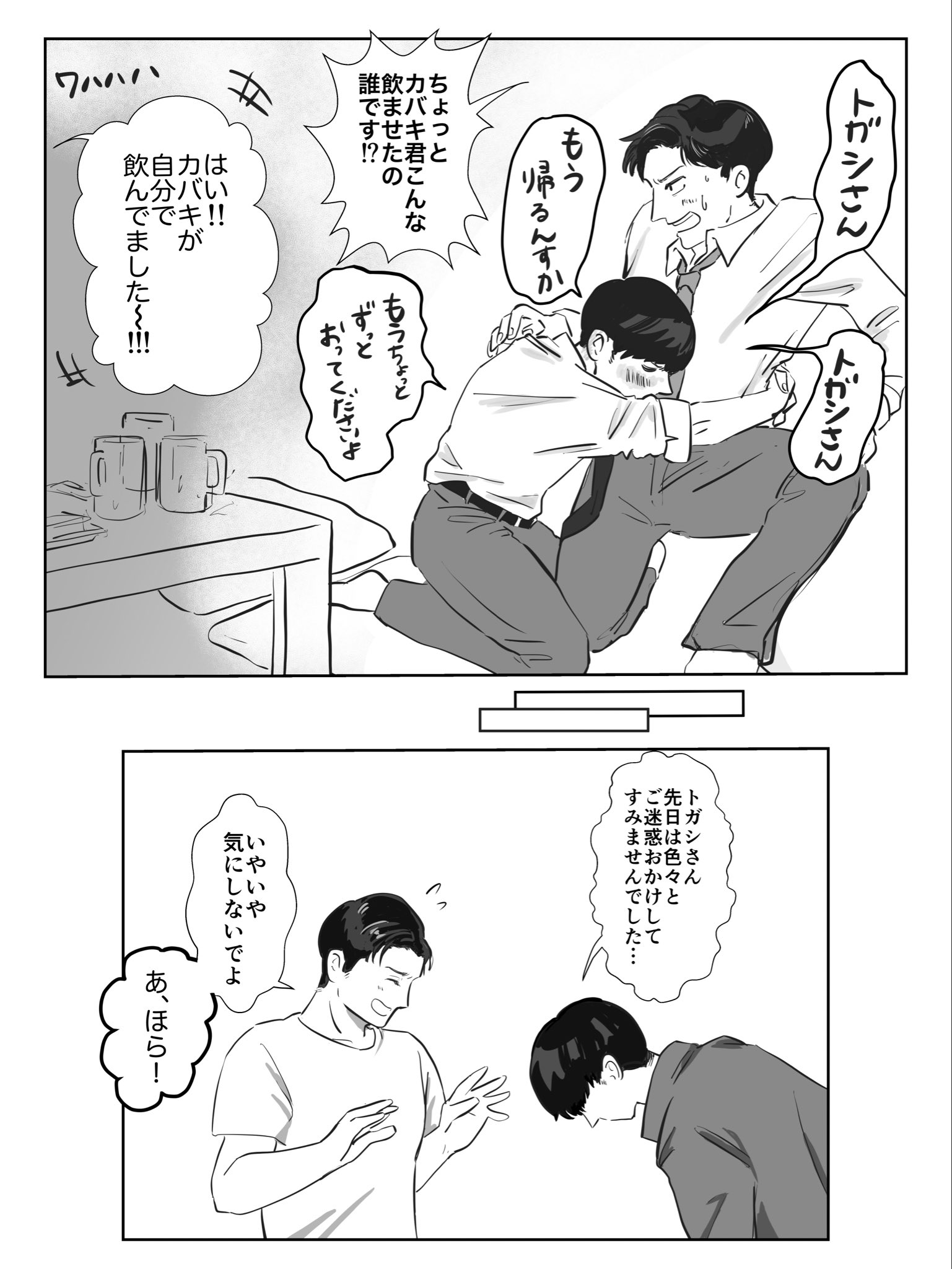 しょ〜そ (@dgmg_110) on X人事在邀トガシ出席親睦會時特地提到カバキ跟海棠會出席,這個說法很像是覺得トガシ跟他們不太熟,結果下一幕直接接到他跟カバキ自然的打招呼,這個矛盾超好看🥹還是人事在邀カバキ出席時也說了トガシさん會來這種話,原來人事其實是カバトガCP廚嗎?!(並不是)