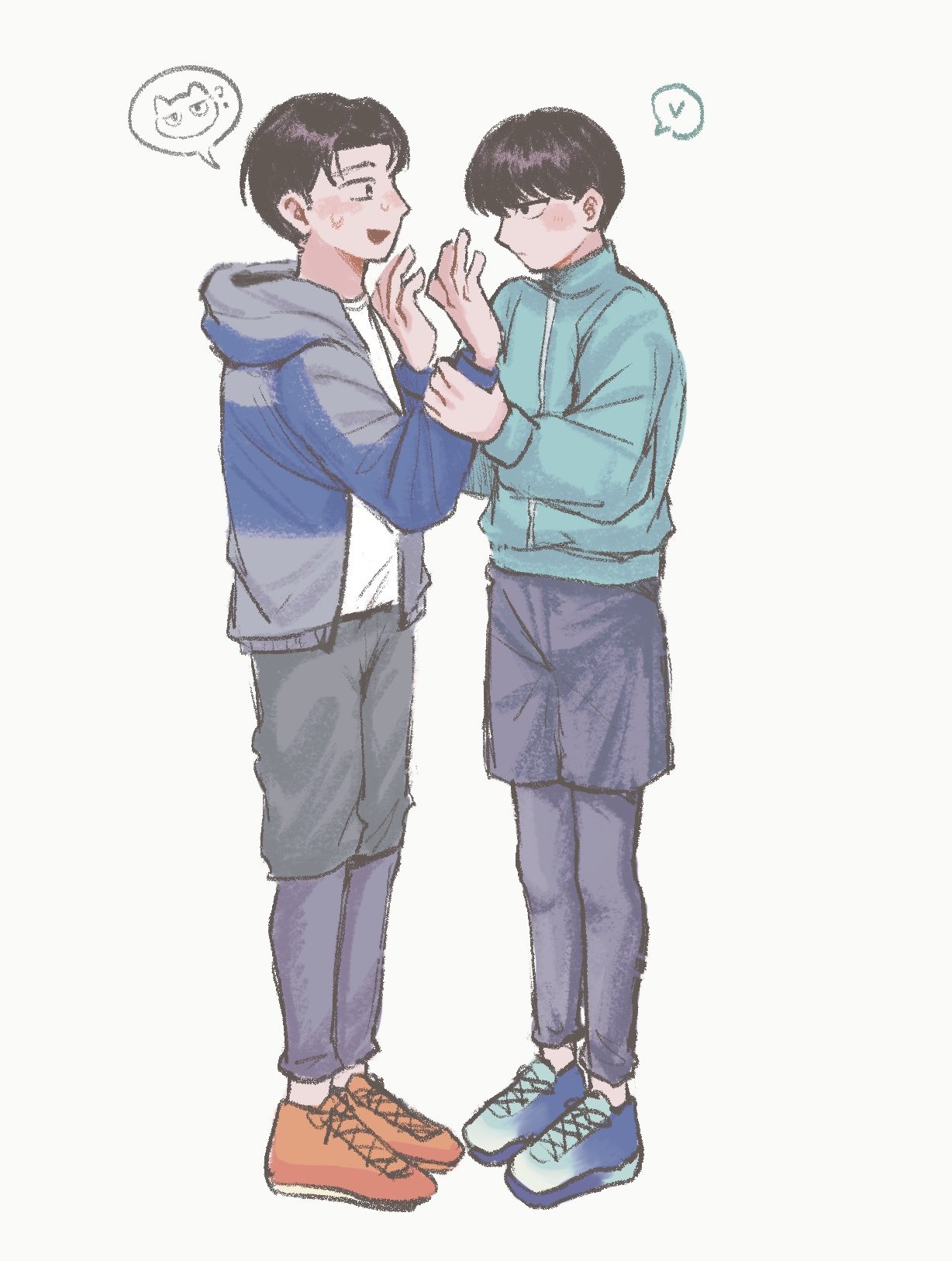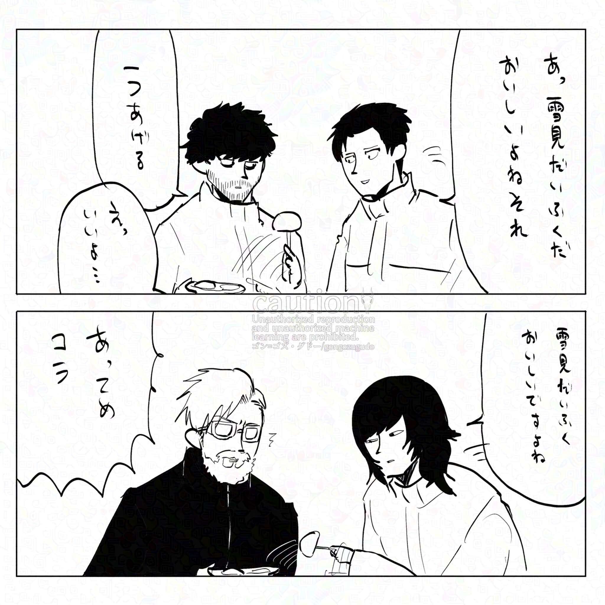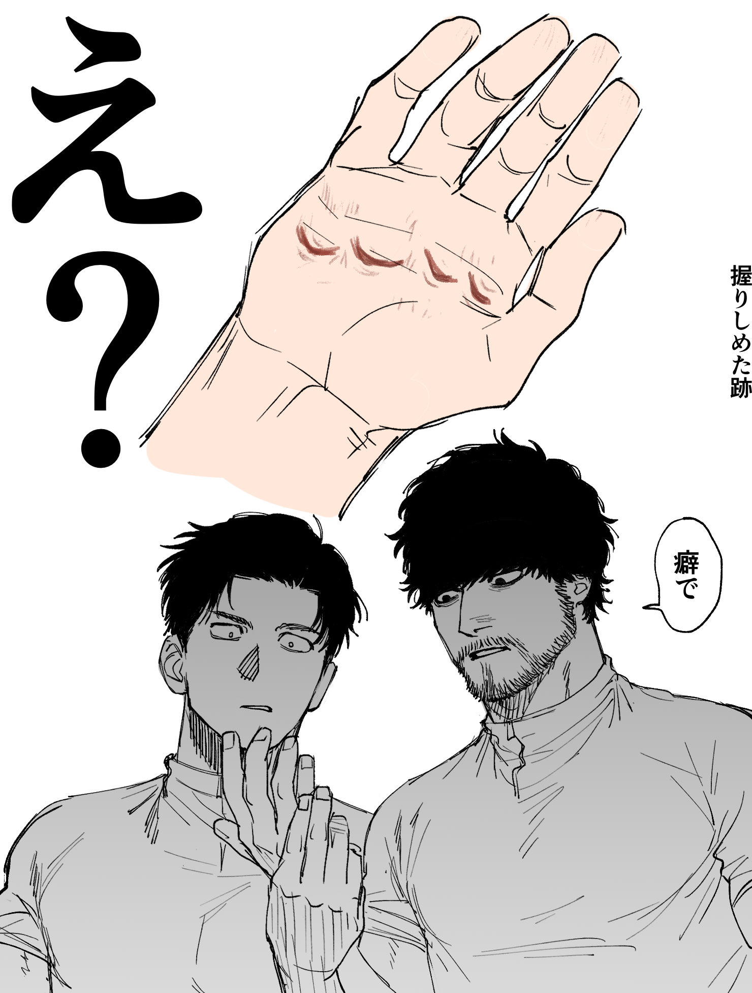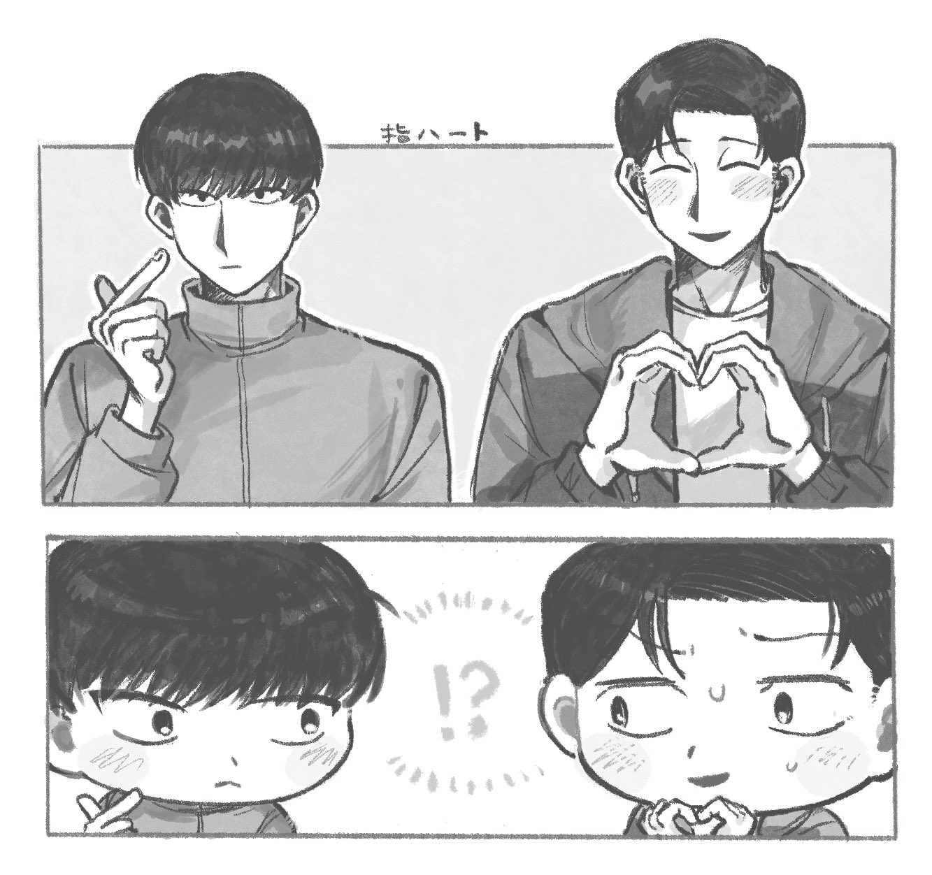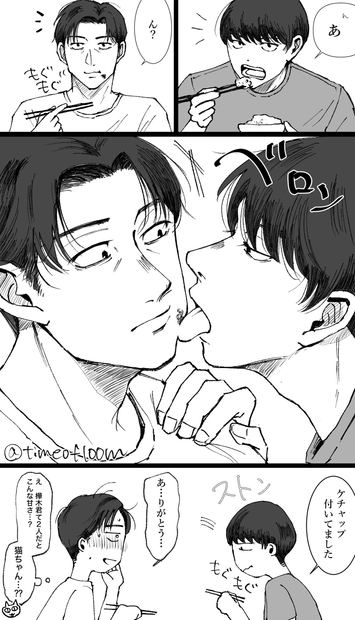 「ふーん?」トガシ揚起眉頭,「小宮くん你有好好回應人家嗎?」「うん。」「真乖。」語畢,他親暱的搓了搓小宮的頭髮。
