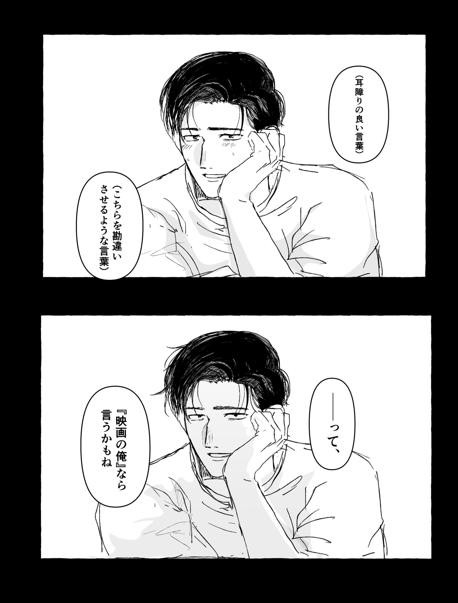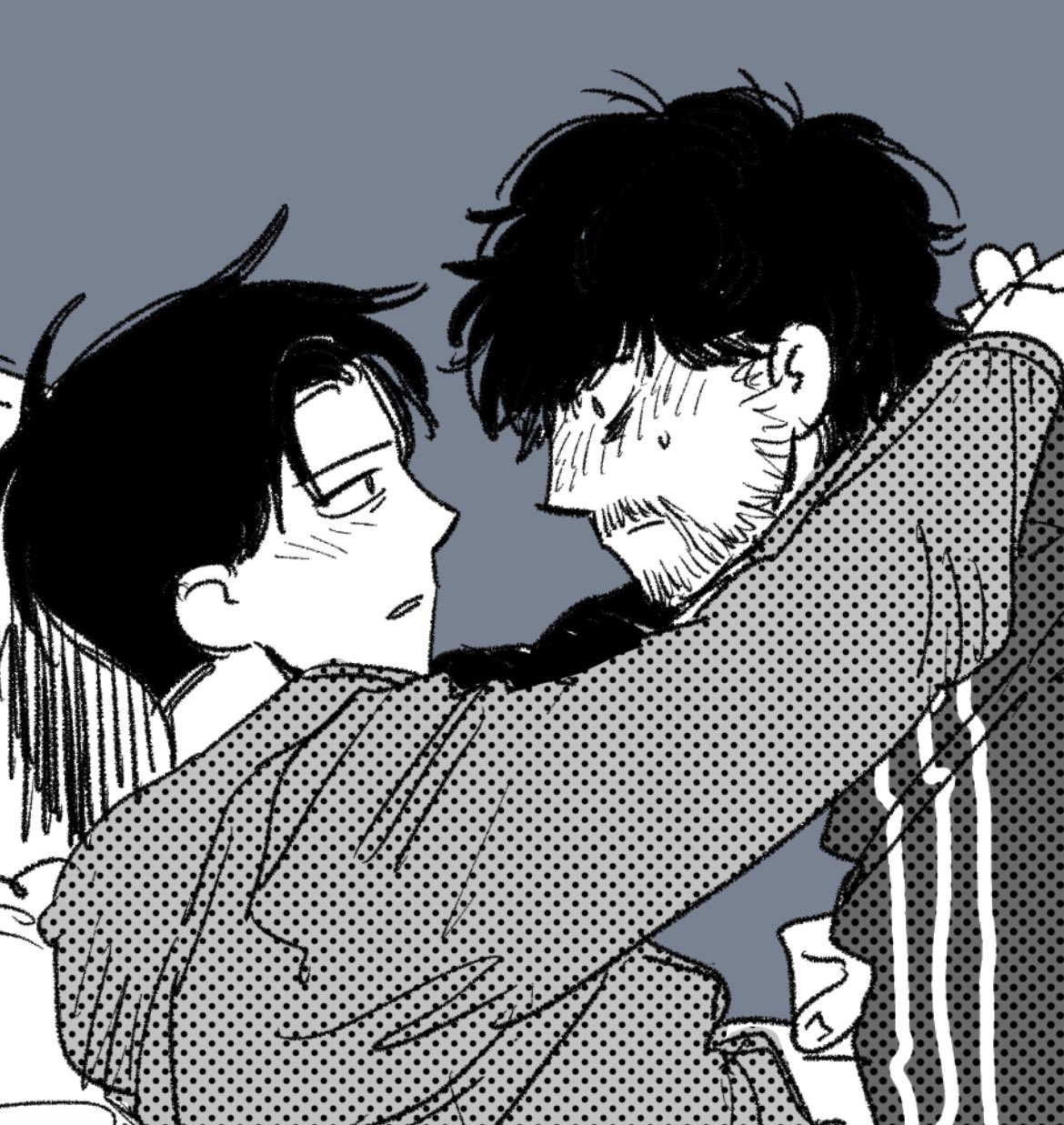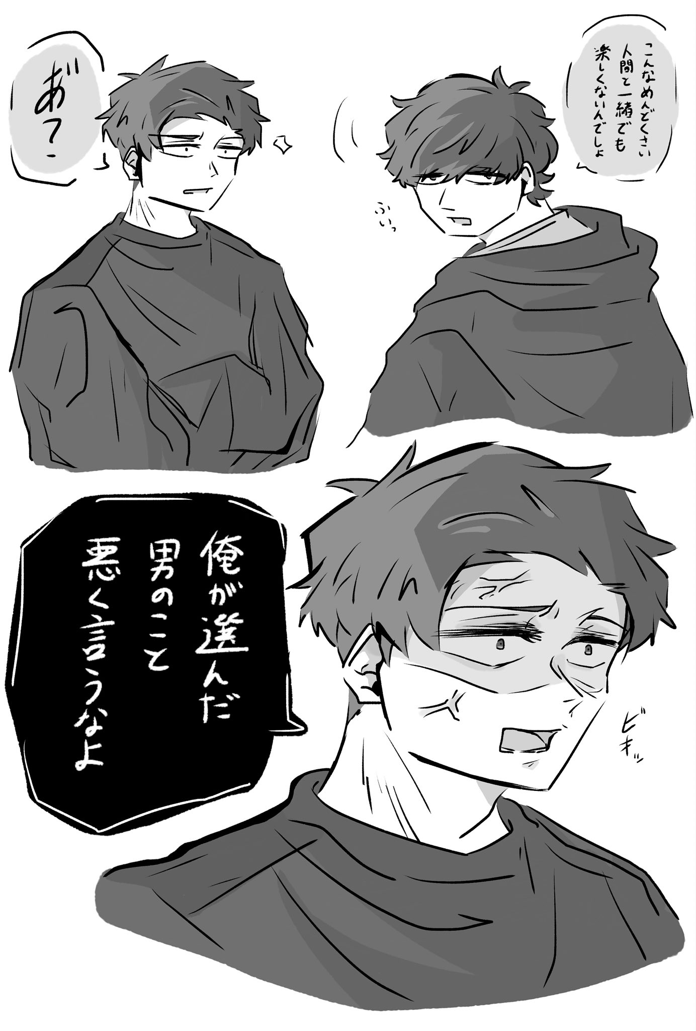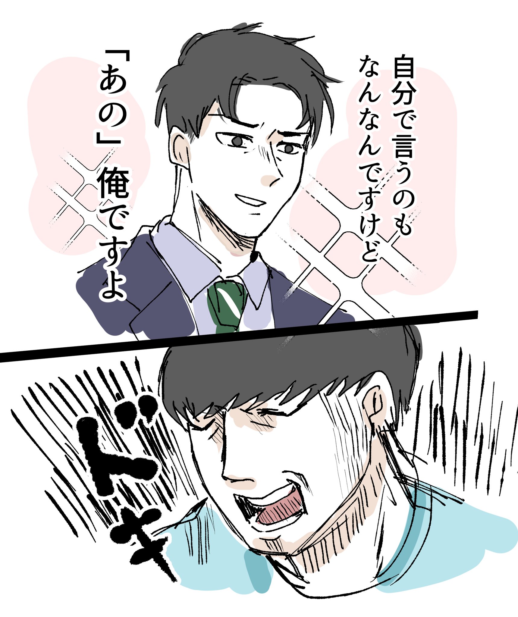 覺得會給對方造成困擾因此推託告白的トガシ,沒想到因為拒絕的不夠徹底反倒讓カバキ找到漏洞可以鑽☺️トガシ在カバキ告白的當下應該多少有一點喜歡他,難說有沒有到戀愛,但至少不會到當機立斷的拒絕。這份猶豫跟天生的溫柔導致他往往會給出模稜兩可的回覆,不打算輕易放棄的カバキ也順利循著他沒說死的話中找到破綻,進而將對話引導回自己的步調上,讓トガシ無路可退。哈啊......カバトガ的告白真是太好看了🥹