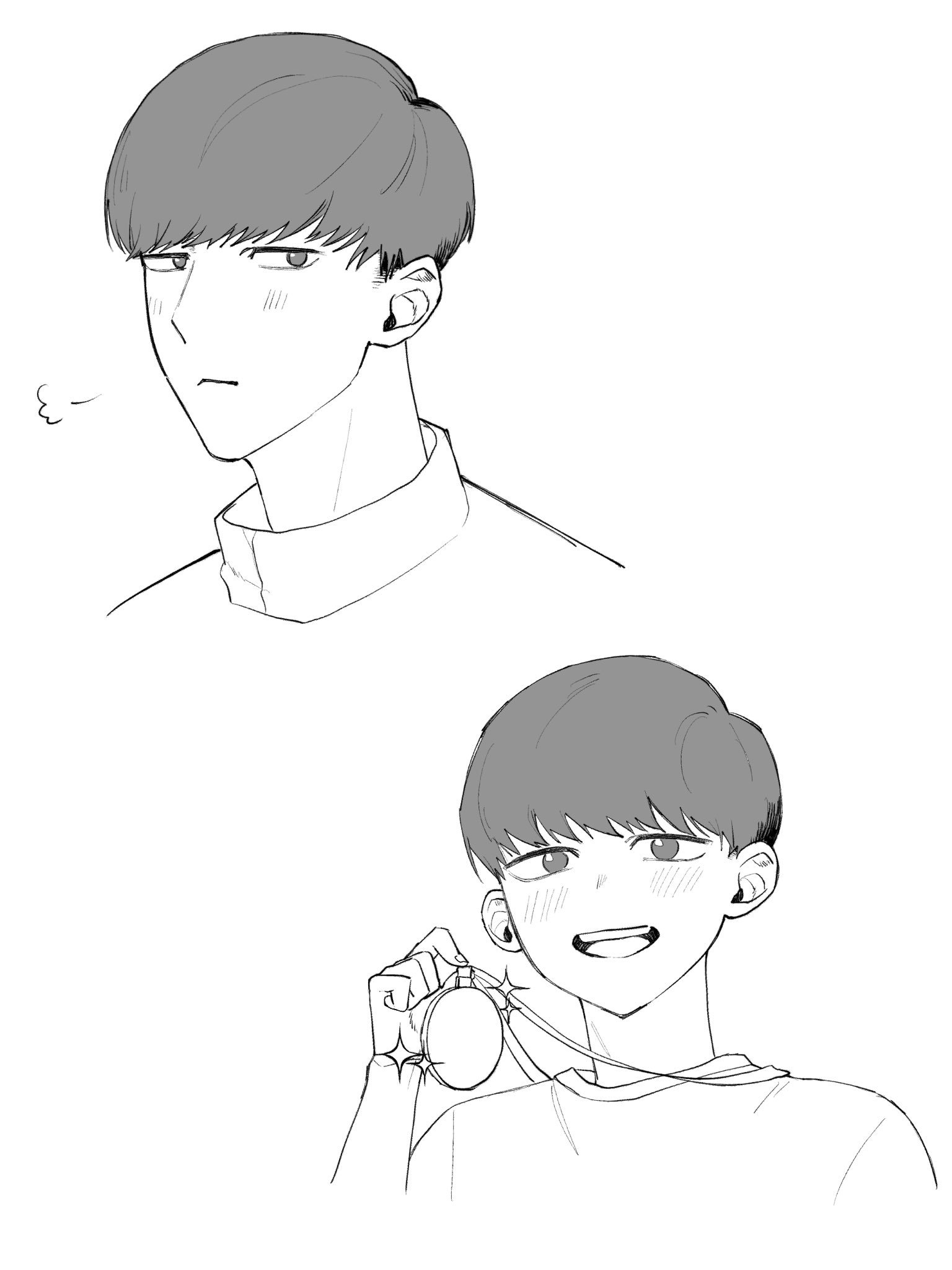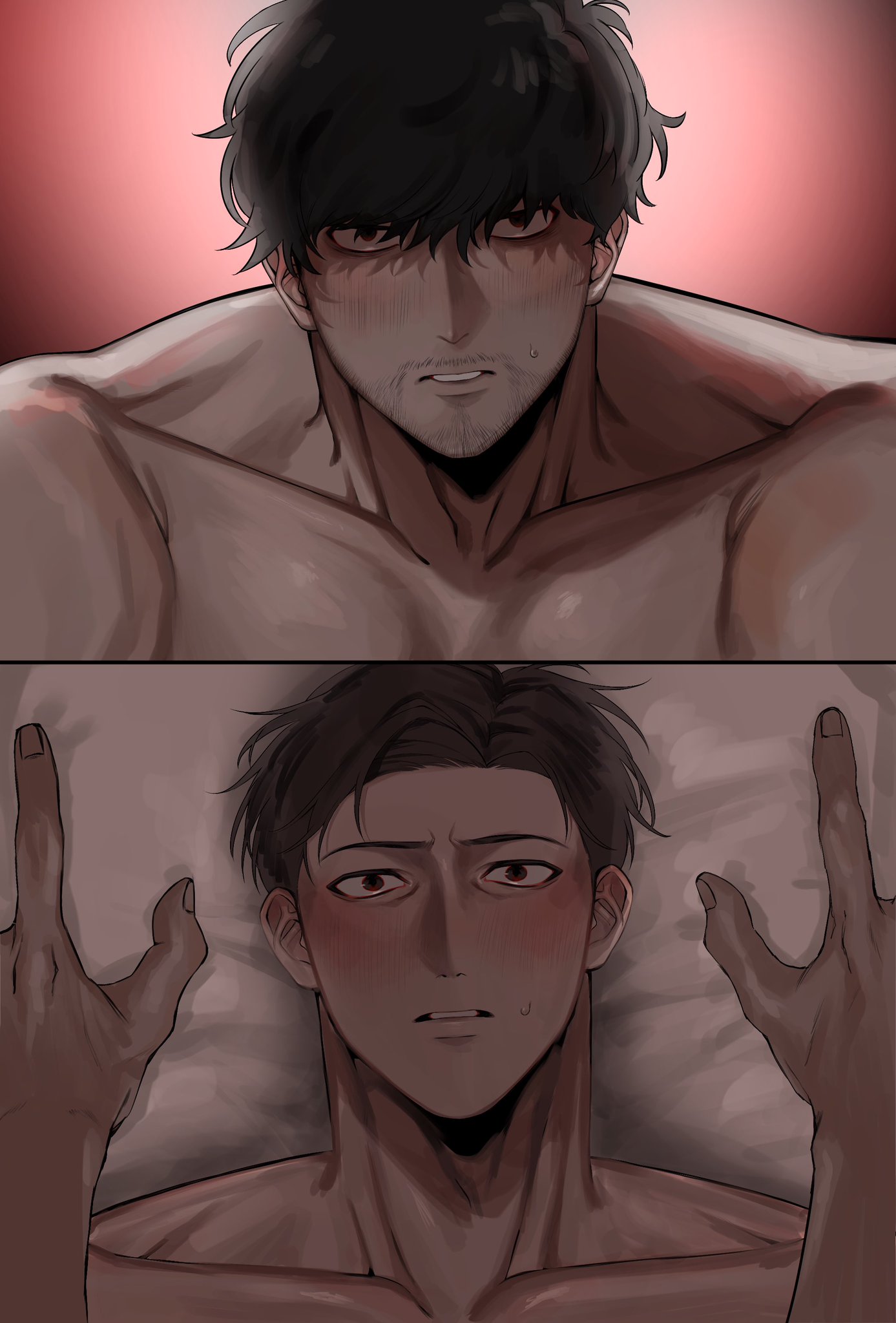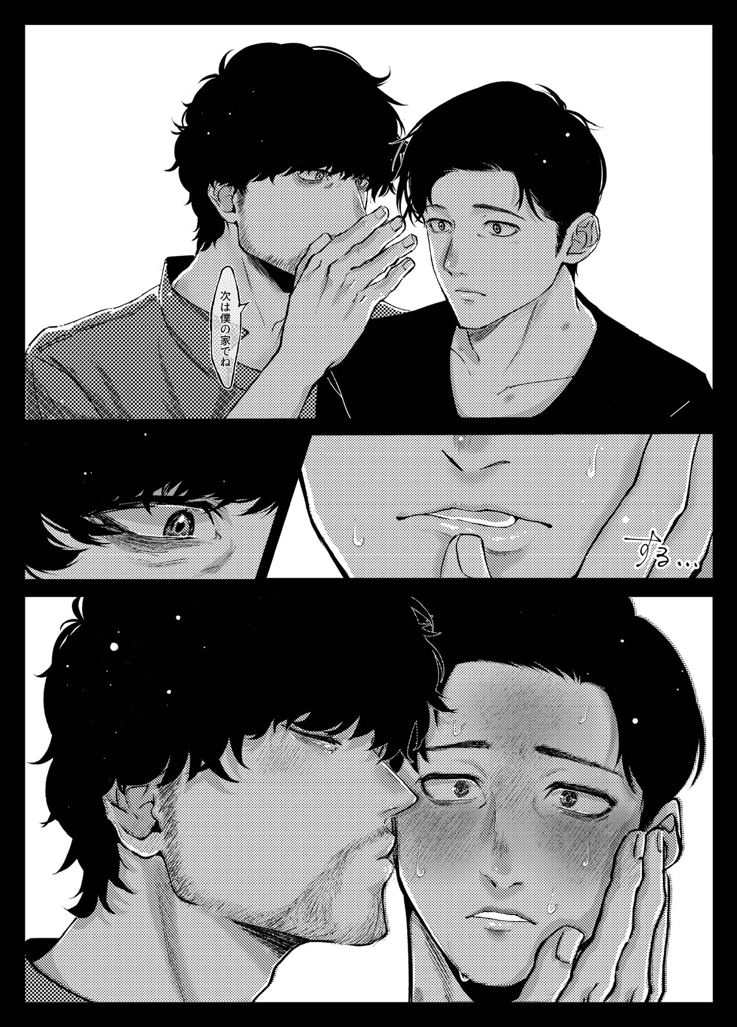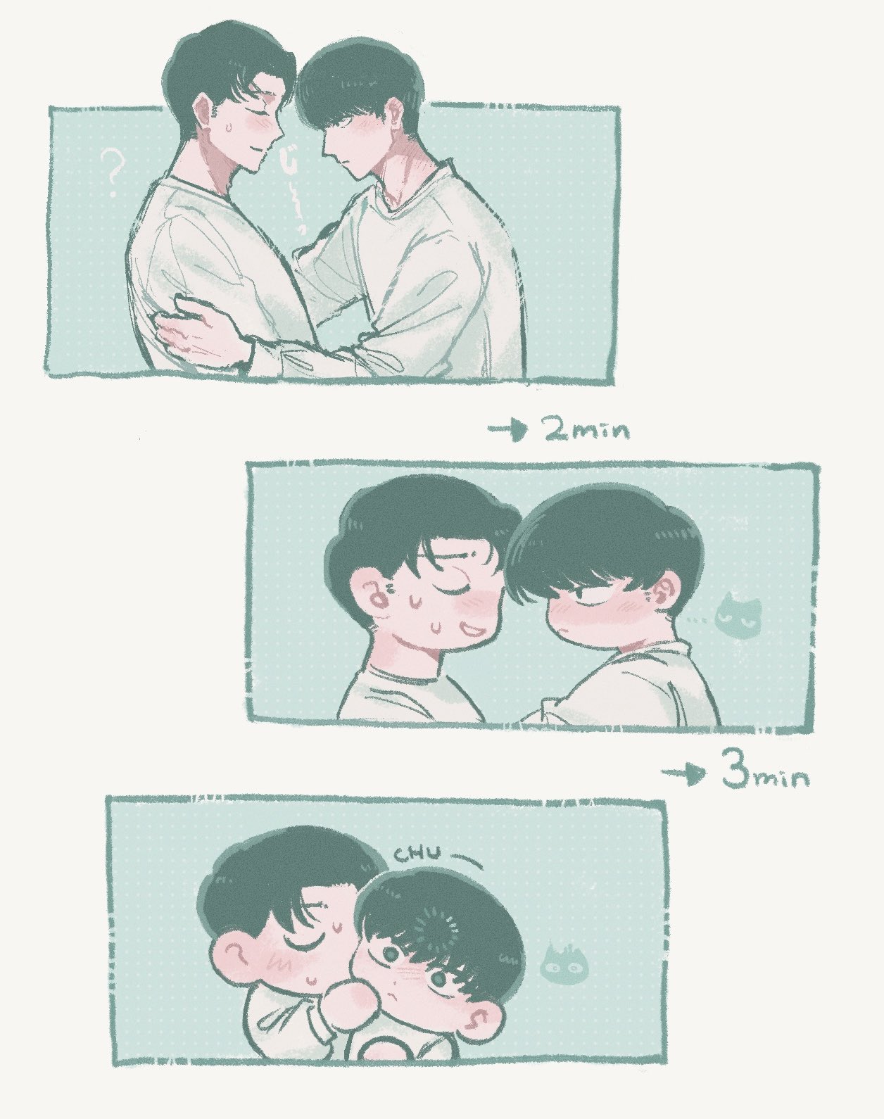 覺得會給對方造成困擾因此推託告白的トガシ,沒想到因為拒絕的不夠徹底反倒讓カバキ找到漏洞可以鑽☺️トガシ在カバキ告白的當下應該多少有一點喜歡他,難說有沒有到戀愛,但至少不會到當機立斷的拒絕。這份猶豫跟天生的溫柔導致他往往會給出模稜兩可的回覆,不打算輕易放棄的カバキ也順利循著他沒說死的話中找到破綻,進而將對話引導回自己的步調上,讓トガシ無路可退。哈啊......カバトガ的告白真是太好看了🥹