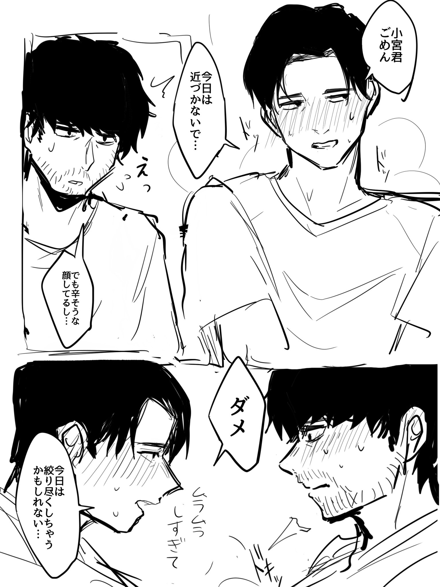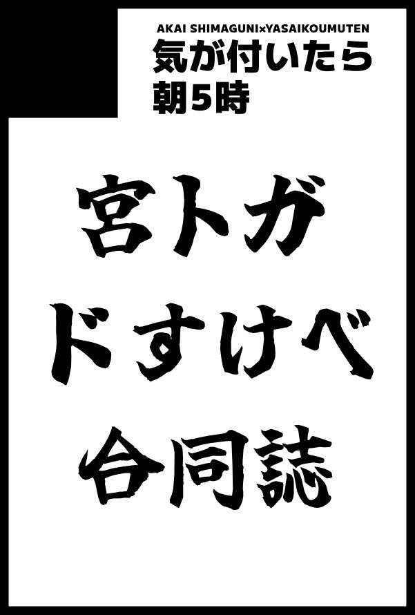 このコ宮くんは俺しか知らないという優越感を抱いているトガシくん超好き。もしかしてトガシくんの体にこのかわいいコ宮くんが付けたキスマークがまだ満遍なく残ってるのもいいよね