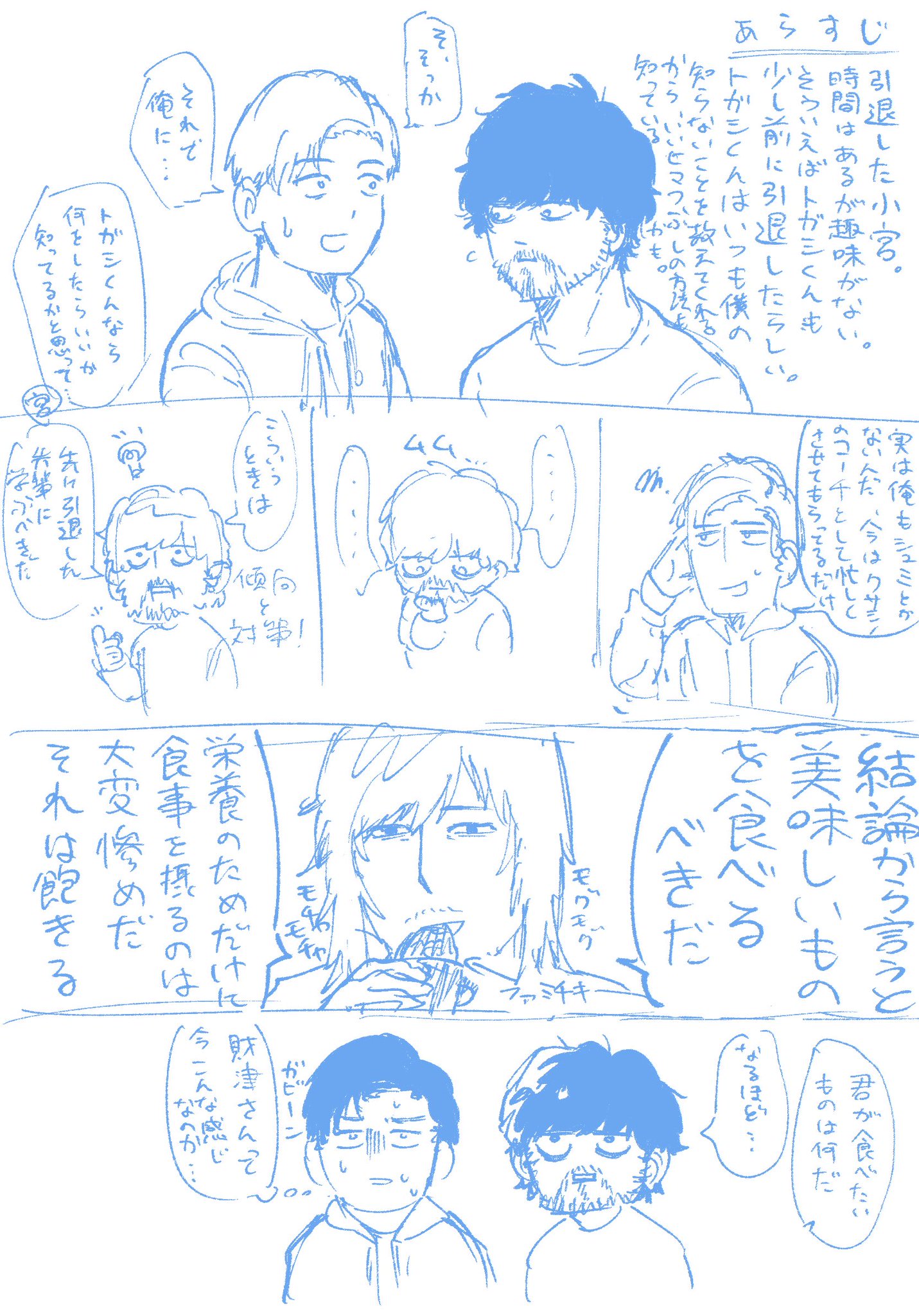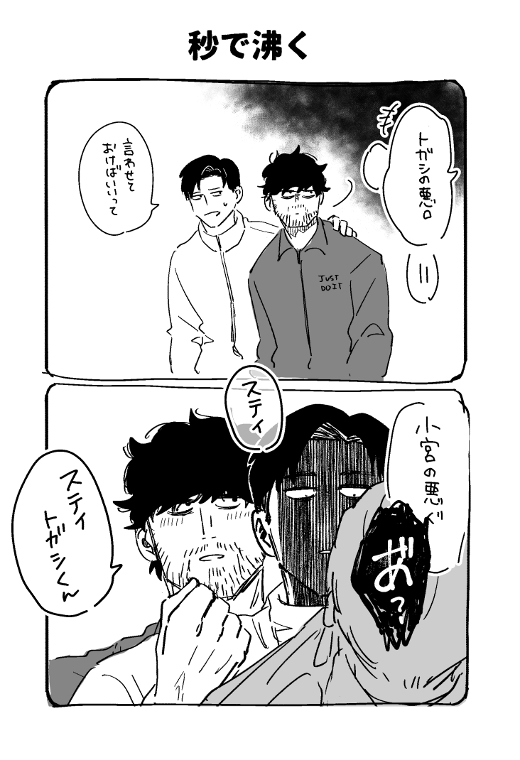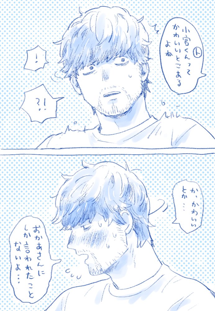小宮くんの髭が恋しいトガシくんめっちゃかわええ。髭なし=高校生の脳内変換も何となくわかる。髭がある方が安心感あるよな、、、「早く髭生やしなよ」と無茶振りをするトガシマジで好き