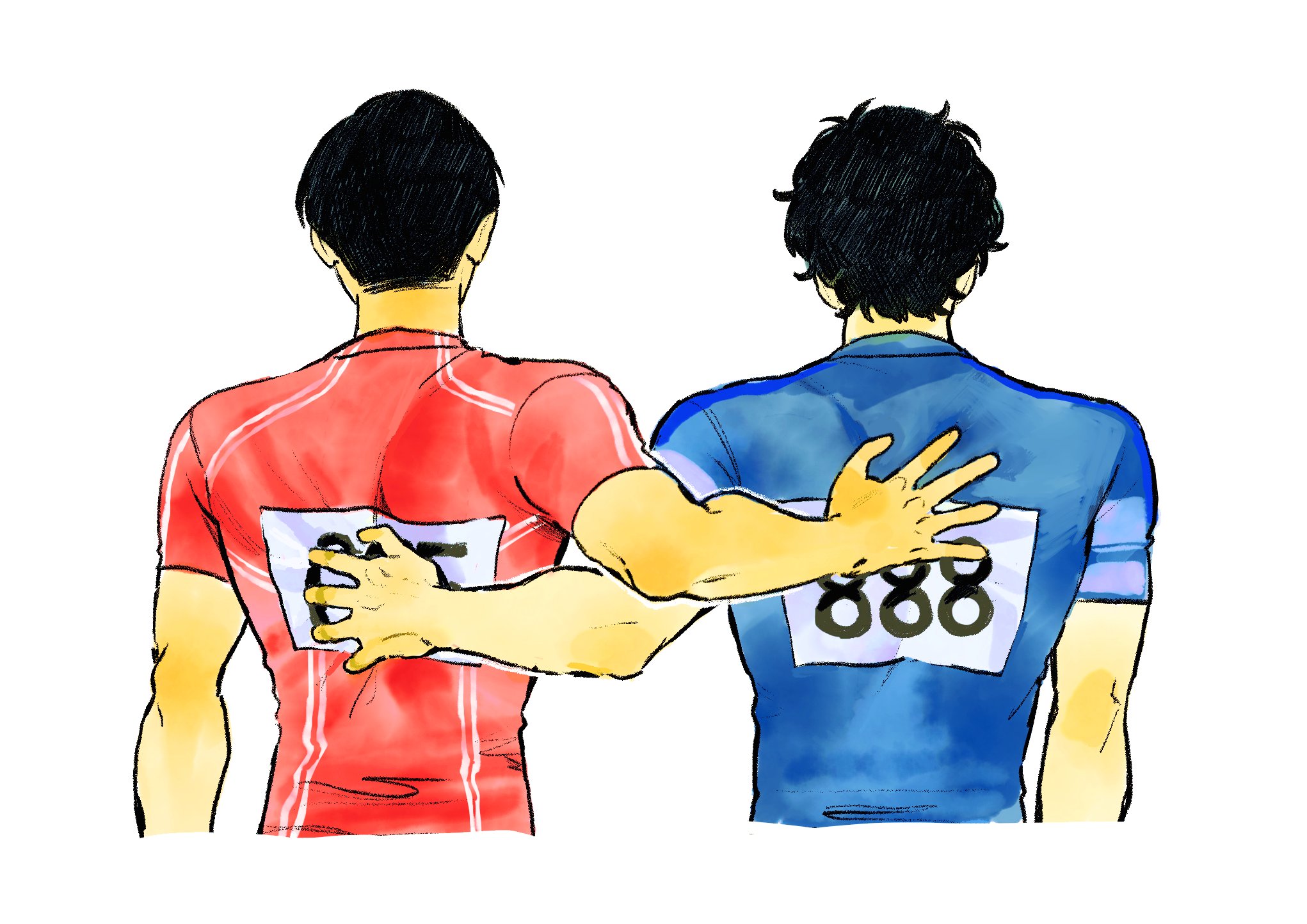 小宮看了看他又看了看手中的圍脖,一股暖意自心底漸漸漫出,他從未想過收到禮物會是這麼讓人開心的事。明明不是特意為誰挑選的禮物,他卻覺得或許一切皆是命中注定。自トガシ走進他的人生後,他的世界逐漸染上了色彩,跑步不再是為了逃避現實的道具,而是能讓傾注人生與熱情的興趣。