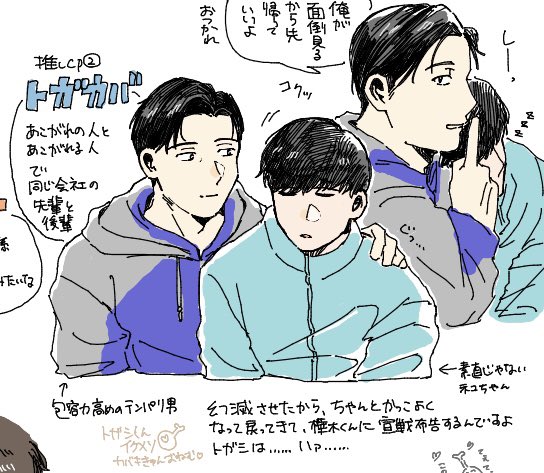 好可愛トガシ,喜歡不管跟小宮還是跟カバキ都下意識覺得自己有義務領導這段關係的トガシ。不過トガシ其實戀愛經驗不大充實,也會吃醋跟鬧脾氣,跟カバキ在一起時他更會在意對方是否對自己感到幻滅,但カバキ看到トガシ喜歡他喜歡成這樣只會開心的要死吧🥰