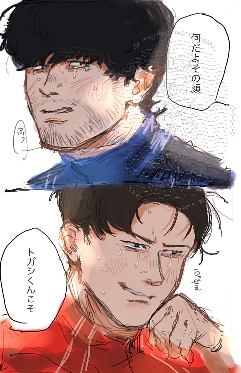 太難過了吧😢謝謝トガシ不顧周圍目光大聲喊出他的名字,仔細想想漫畫還是在隔壁同學邀他附和嘲弄的時機,無法忍受認真的人被貶低而爆發情緒的トガシ真的好善良。能為了他人而打破自己一直害怕的界線真的很了不起🥺