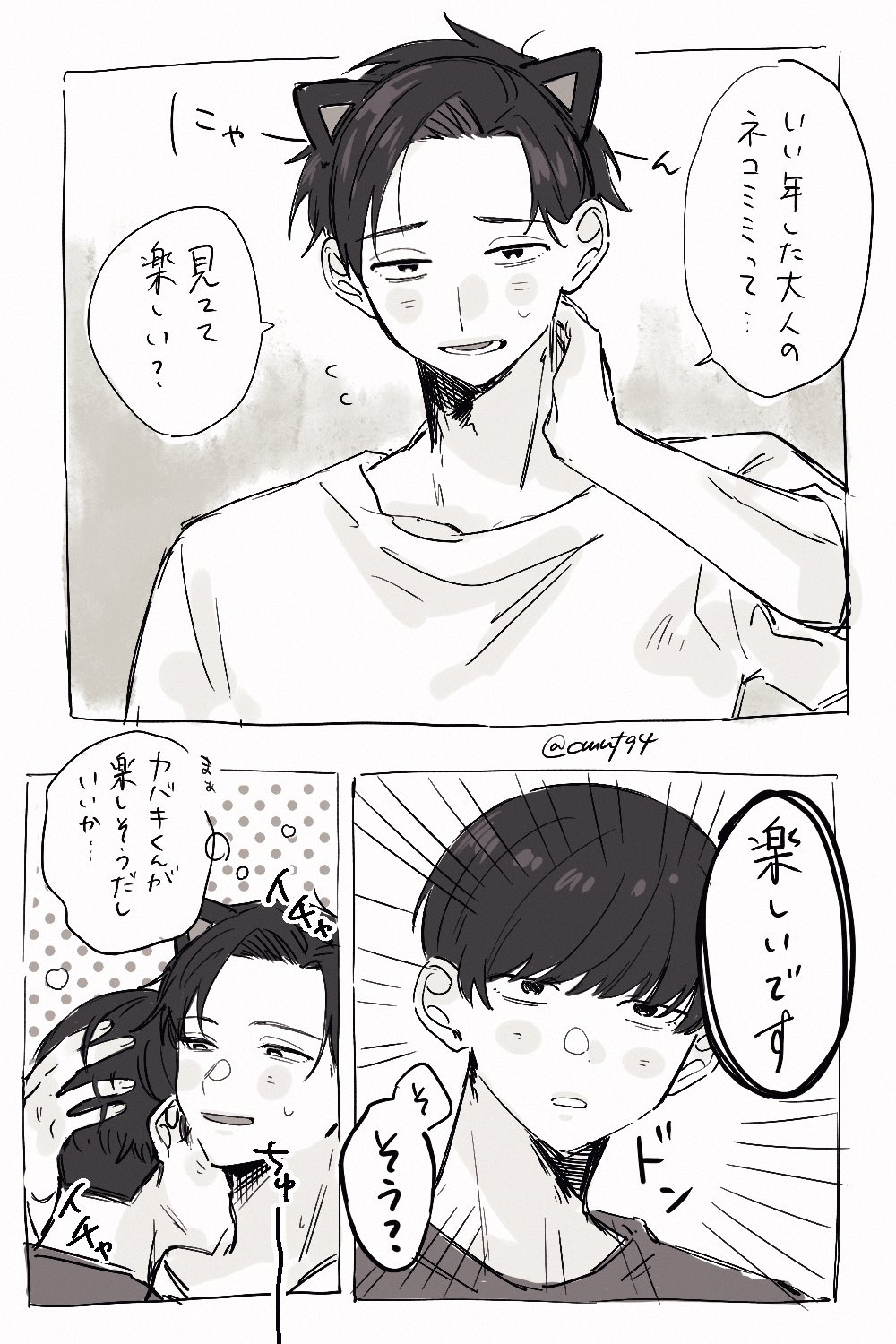 さのの (@SnnOoo0) on X超可愛,神情再怎麼淡定也逃不過耳朵跟尾巴最直覺的本能反應🥰說カバキくん冷淡的人肯定沒看過他遇上トガシ的樣子,越喜歡在外人面前就表現得越冷靜,一回到同居的家就會瞬間變得黏人。感覺在長到一定歲數或交往一段時間後カバキ就會比較沒有顧忌的在外面跟トガシ貼貼🥹也可能是トガシ先開始的🥹👍