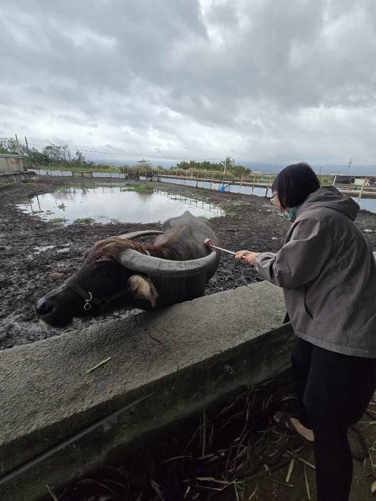 水牛牛魔王和罔飼,牛魔王是一隻愛被刷刷的牛,而且牛超級可愛的是牛沒到很喜歡被陌生人摸,如果手上沒飼料他會甩牛頭不給摸,或是直接走掉。要如何讓牛心甘情願的給人摸臉或頭呢!!就是刷牛刷到滿意為止,成為牛認可的刷背專家牛就會給摸