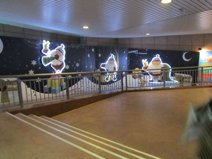 從聖誕樹下方,準備進入板橋車站的走廊,還有很可愛的看板哦