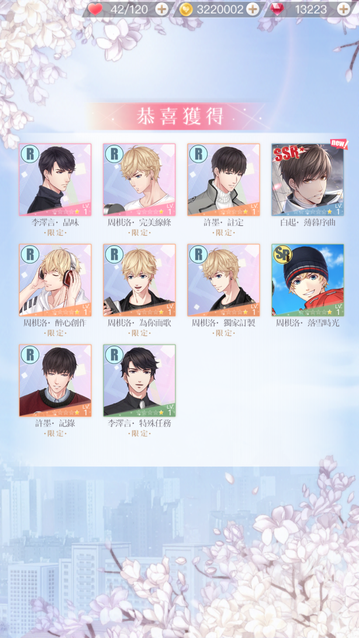 我144抽,保底帶白起,只來一張李澤言,連普通SSR都沒有~