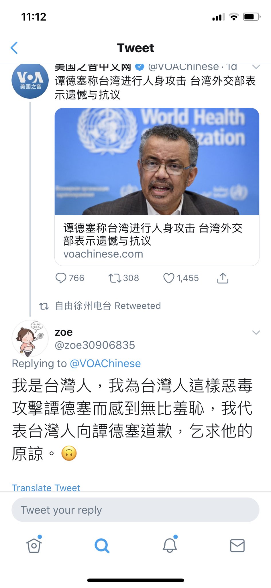Samson Ellis on Twitter 【Taiwan’s investigation bureau is highlighting how Chinese Internet users are trying to distort the debate by claiming to be Taiwanese and apologizing for the racist attacks against @WHO ’s Tedros... all using the same the exact same wording.】