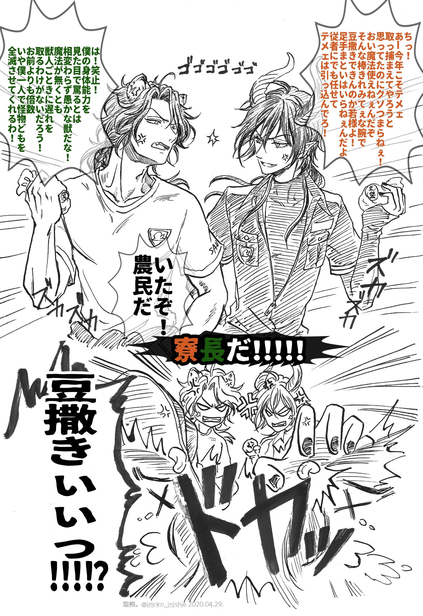 ಠ_ಠ - #ツイステ 趁著更新好之前的最後迫害(X) 豎琴活動的農民隊與怪物隊捏他MEME下收