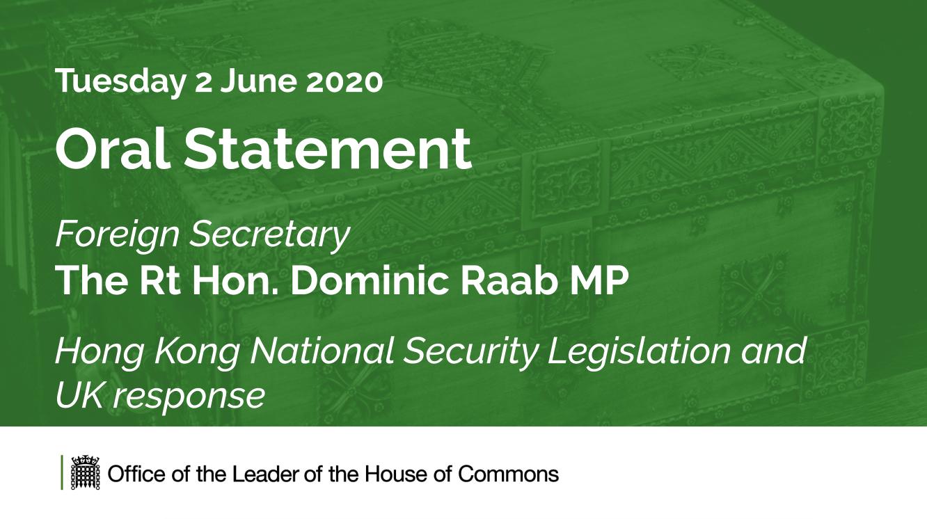 Leader of the House of Commons on Twitter「這是個好消息。我期待在明天的議會中聽到DominicRaab的聲明#HongKong」