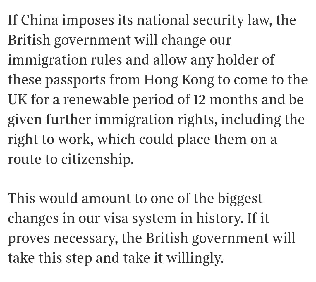 Boris Johnson #StayAlert on Twitter「允許持有這些護照的任何人從香港來英國-擁有公民身份的途徑-等於我們簽證制度歷史上最大的變化之一。