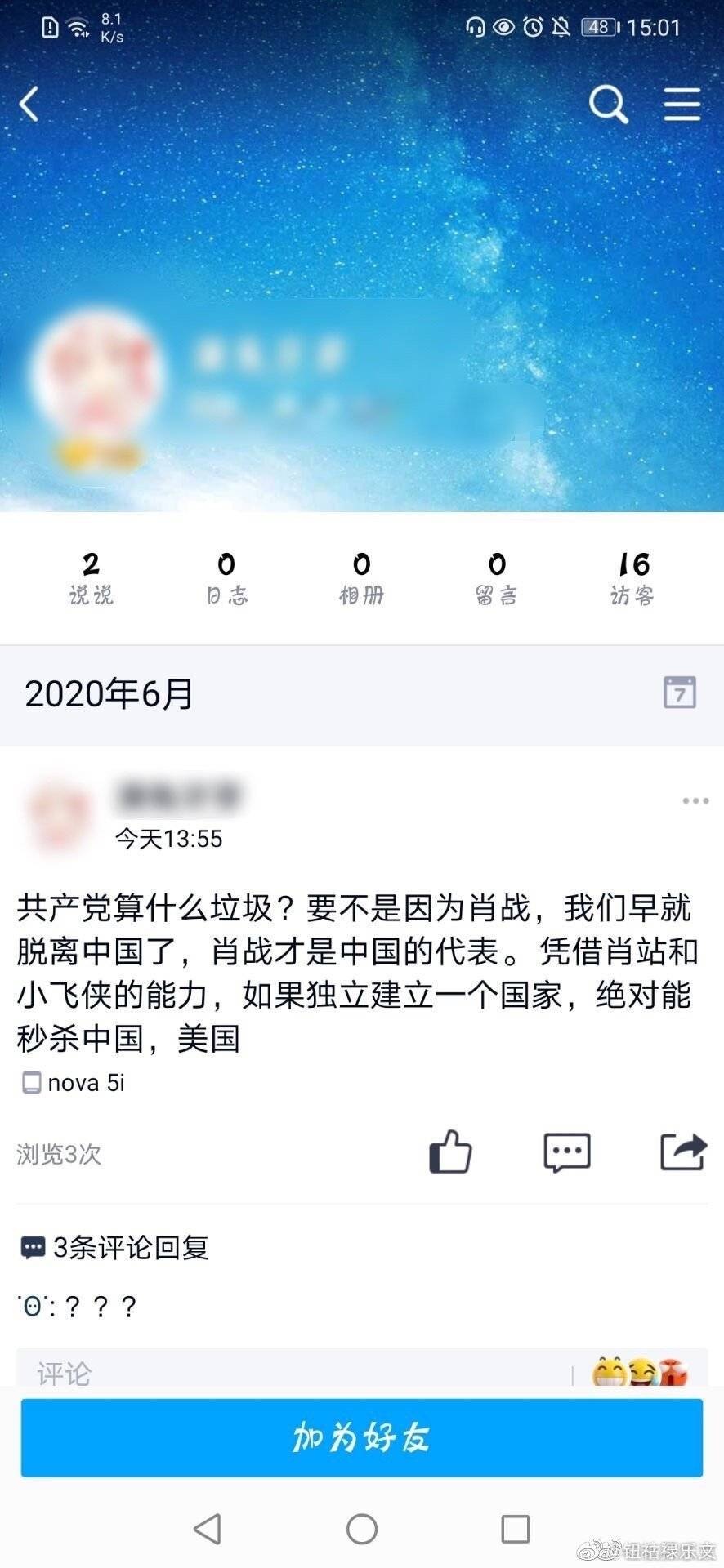 小王粉刪肖戰粉好友了wwwww