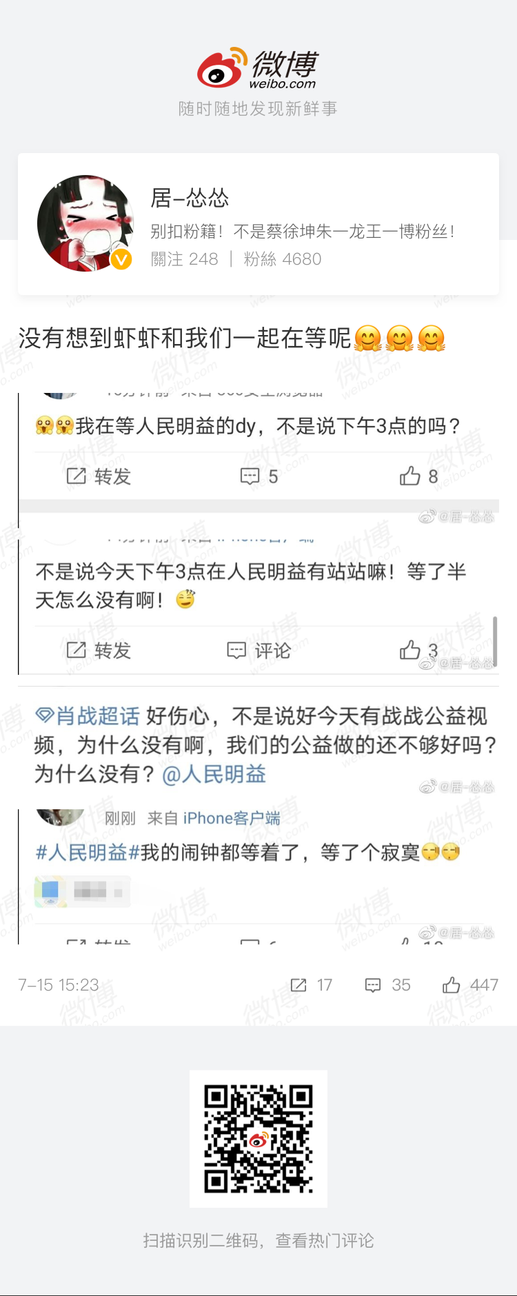 honey6848: 剛剛去看了,是中國粉圈最討厭的白嫖阿!!!!