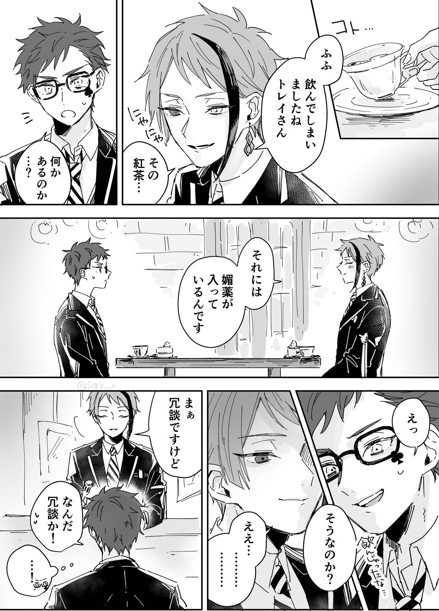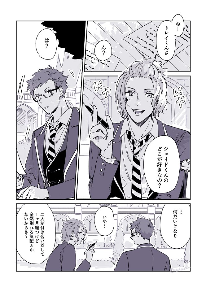花子 on Twitter我是看這漫後開始入坑的,最開始是跑完花婿活動劇情被這對的互動打中萌點,好喜歡看ジェイド主動撩トレイ學長