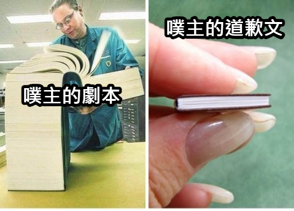 再分享一次wasabi大的迷因,他寫道歉文可能都沒杜撰噗的十分之一認真吧