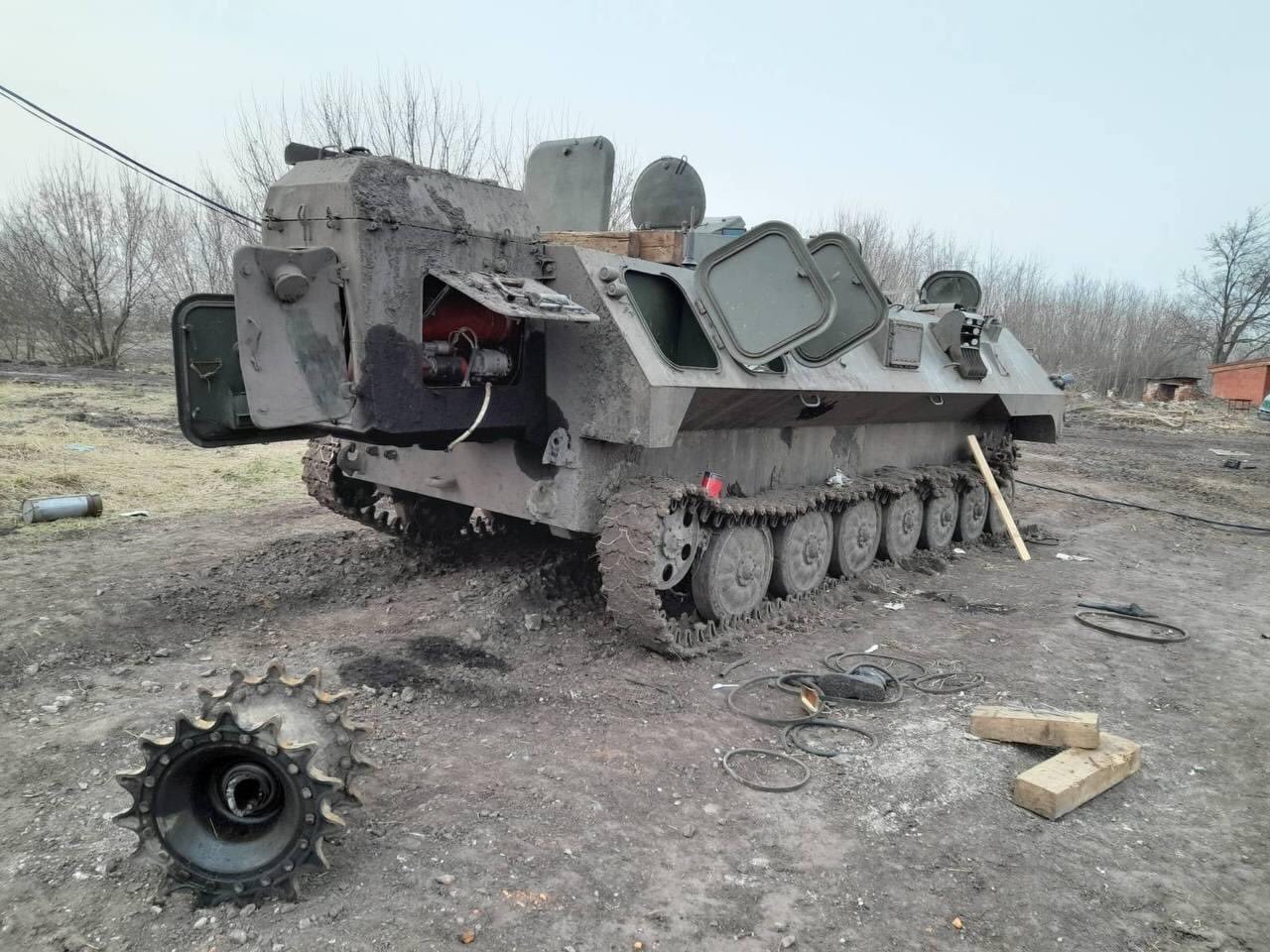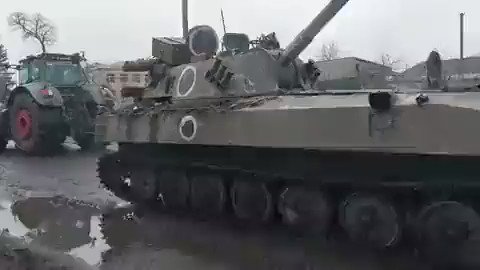 新‧二七部隊 軍事雜談 (New 27 Brigade) on Twitter4/4. 一輛俄軍颱風裝甲車被遺棄,烏克蘭軍民合作用拖拉機和卡車一起拖走 #MVP