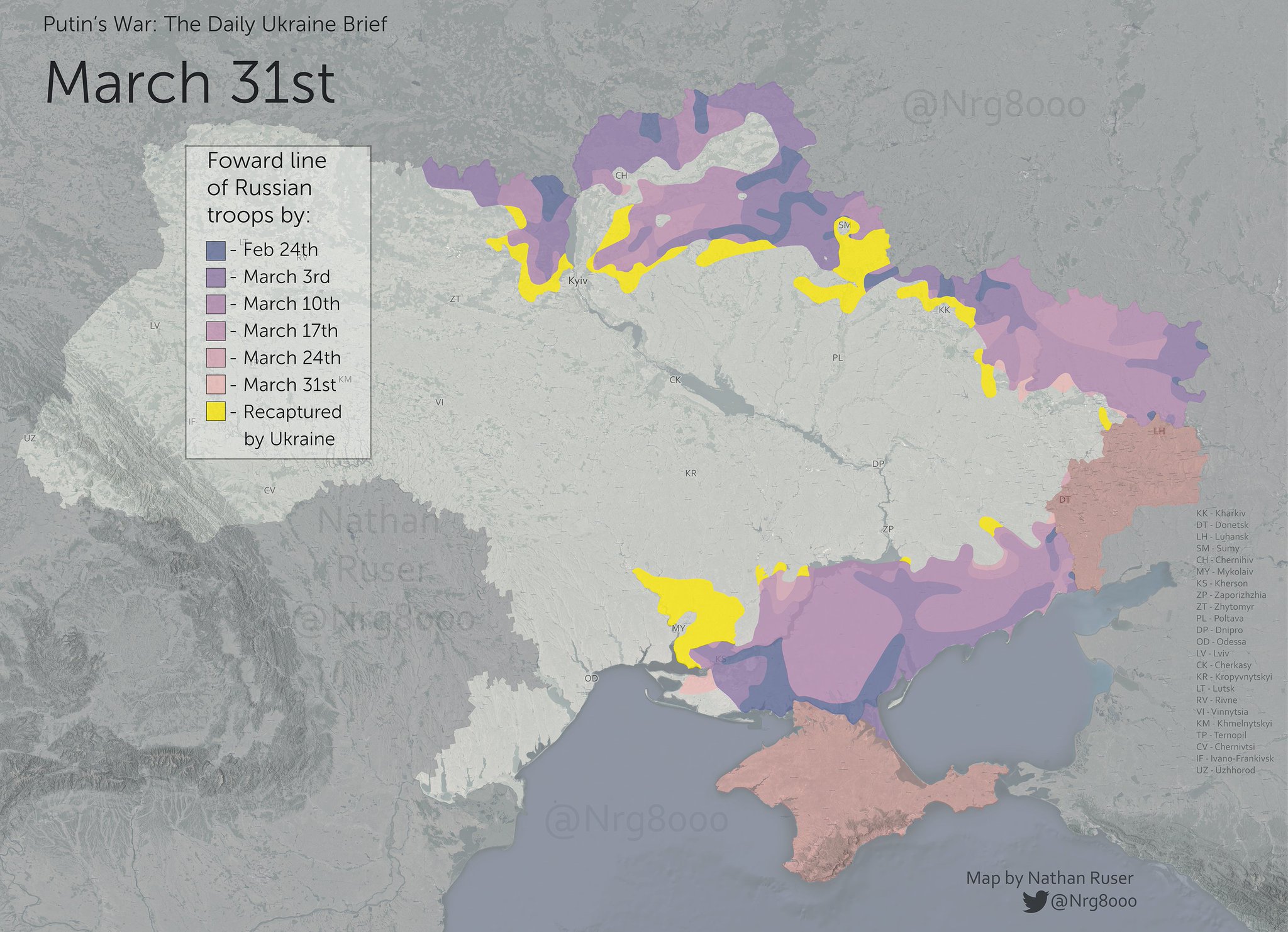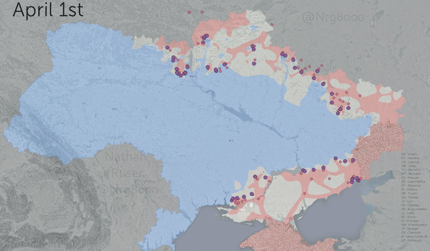 🇺🇦 Ukraine Weapons Tracker on Twitter在北線的俄軍大部逃回俄國之後,接下來激戰的方向必然轉移至東北的哈爾科夫與烏東頓巴斯。可以預期四月份將會有更激烈的消耗戰