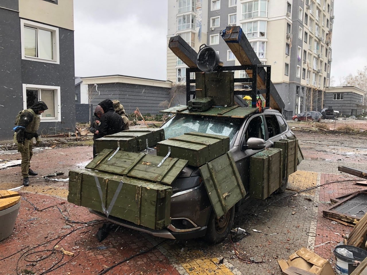 新台灣國防軍事網 on Twitter相當有趣!俄軍用普通汽車 + 木製彈藥箱自製了一個假的防空飛彈發射車,當作誘餌欺騙烏軍無人機,不過在烏軍收復基輔之後落入烏克蘭軍方手中