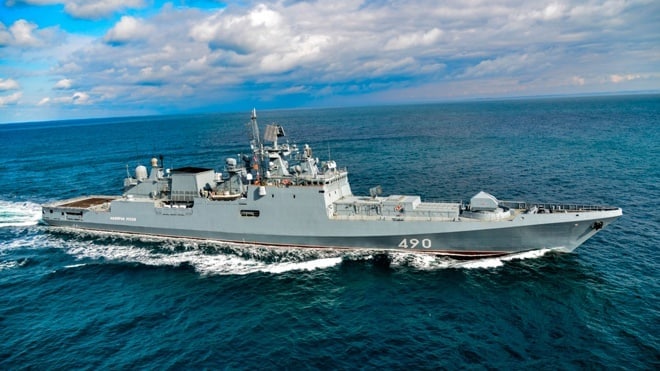 Украинские защитники повредили российский ракетный ф...埃森海軍上將號巡防艦為「格里戈洛維奇海軍上將級」同級艦,噸位4000噸級,可搭載垂發3M-54「口徑」和3M-55瑪瑙斯巡弋飛彈、9M37 Buk防空飛彈、1 門 100mm A-190艦炮、2座2聯裝DTA-53-11356 533mm魚雷發射管、一座反潛火箭,以及Kashtan型近迫武器系統