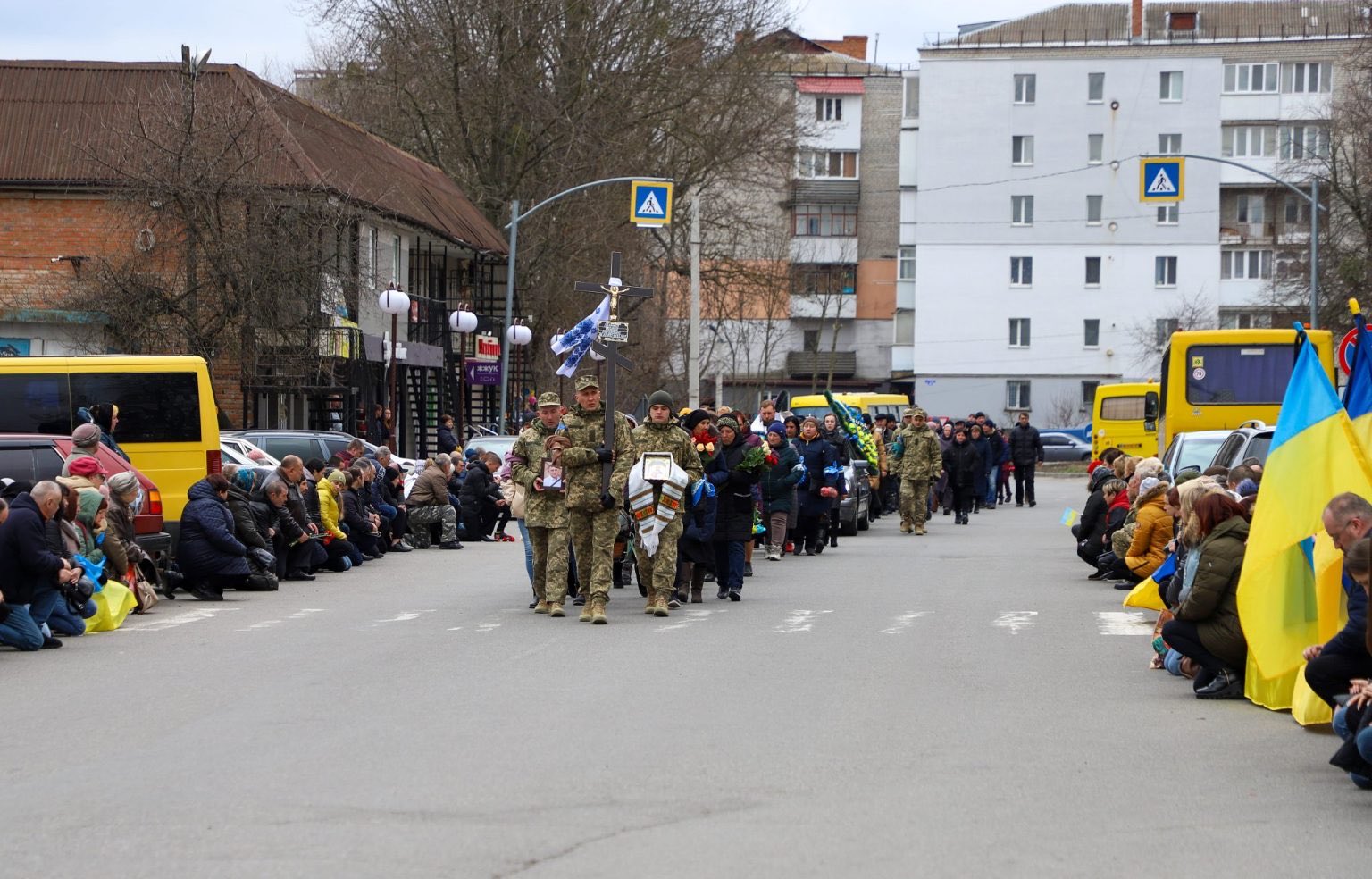 新‧二七部隊 軍事雜談 (New 27 Brigade) on Twitter4/4. 文尼察地區,陣亡烏軍士兵回到故土,烏克蘭民眾半跪鞠身、哀悼迎接