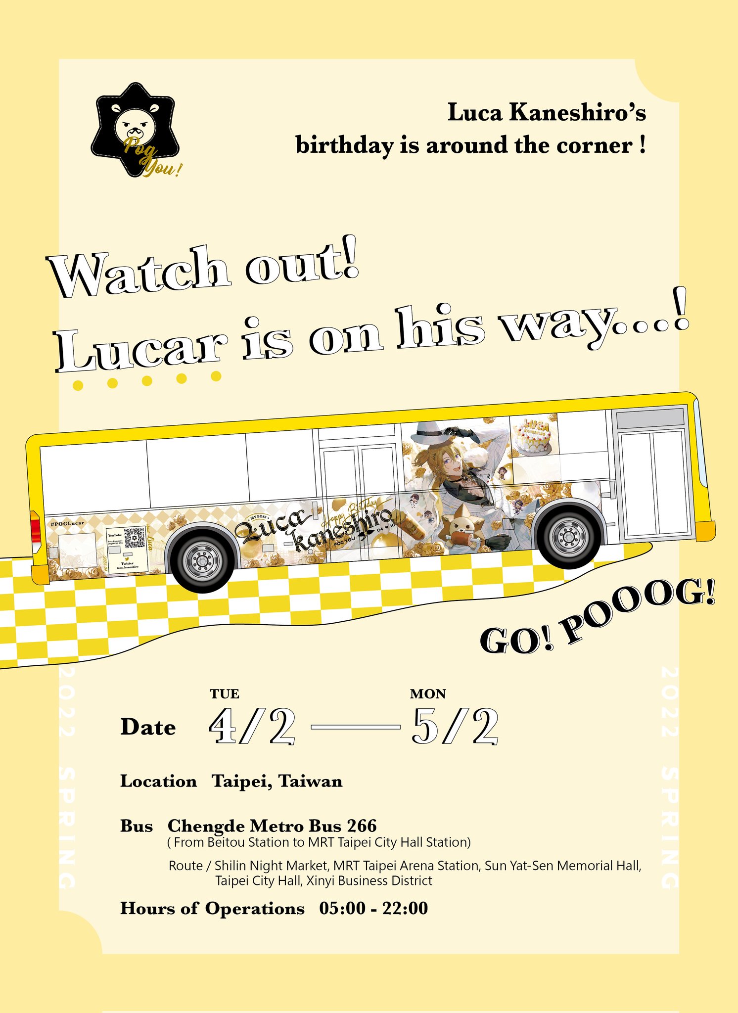 4/10活動當天,主辦團隊於總站發放了限定小旗子,因想要增加一些線下活動的紀錄,主辦團隊請願意入鏡協助的同好們配合車身主視覺的高度蹲下,避免遮擋Luca的正臉,並舉高旗子幫忙製造旗海構圖,並無其他用意。