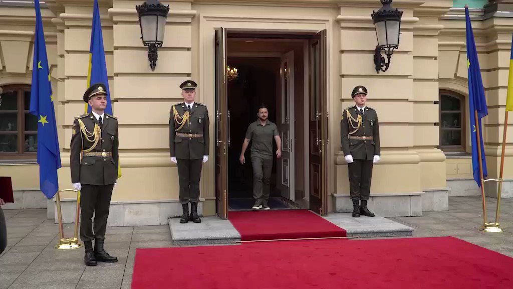 新台灣國防軍事網 on Twitter歐盟執委會主席烏爾蘇拉·馮德萊恩在戰爭期間第三次旋風訪問烏克蘭,並會見烏克蘭總統澤倫斯基。看來澤倫斯基在車禍中並未受傷