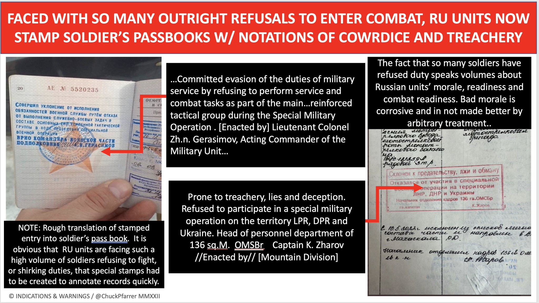 新‧二七部隊 軍事雜談 (New 27 Br... on Twitter9/16. 俄軍軍人證被蓋上「有叛國嫌疑」印章,這是之前網路消息稱為了檢驗俄軍士兵的忠誠考核,現在因為大量俄軍的投降,這種東西跟廢紙一樣