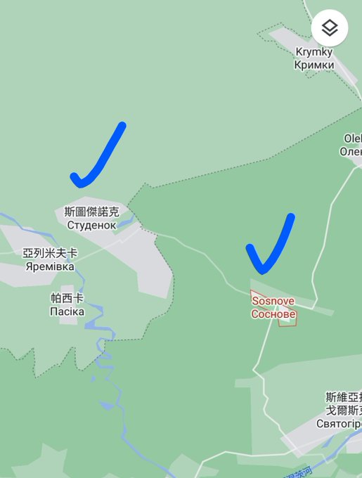 新‧二七部隊 軍事雜談 (New 27 Brigade) on Twitter9/16. 消息指出,烏軍收復頓涅茨克地區的松斯諾夫(Sosnove),以及卡爾科夫地區的斯圖傑諾克(Studenok)