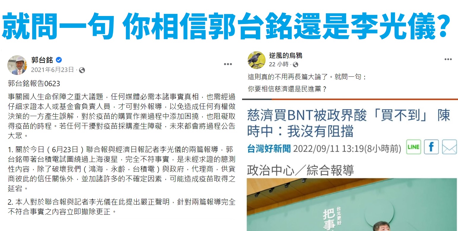 這真的不用長篇大論了,就問一句:你要相信郭台銘還是李光儀?