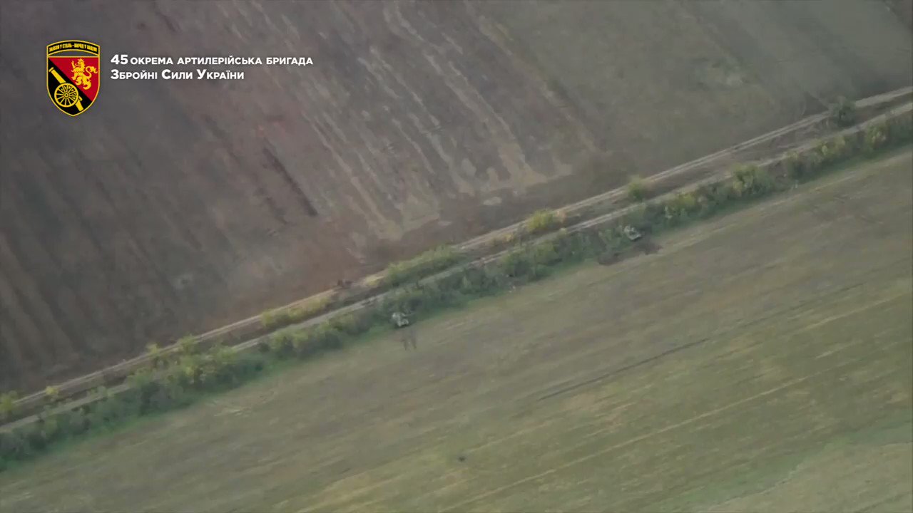 新台灣國防軍事網 on Twitter烏軍使用美援 M982 Excalibur 「神劍」精準導引砲彈一發炸毀俄軍一門 152mm Hyacinth-B 榴彈砲。可以看到卡車旁的俄軍狂奔逃命