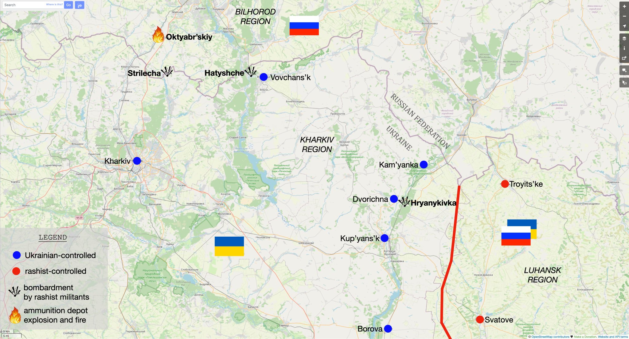 新台灣國防軍事網 on Twitter三小時前新的戰況地圖顯示,一周之內烏軍還收復 Bohuslavka 並向東推進達 18 公里,以及收復 Lozova 和 Stelmakhivka 村。現在烏軍距離主要城市 Svatove 僅 14 公里!
