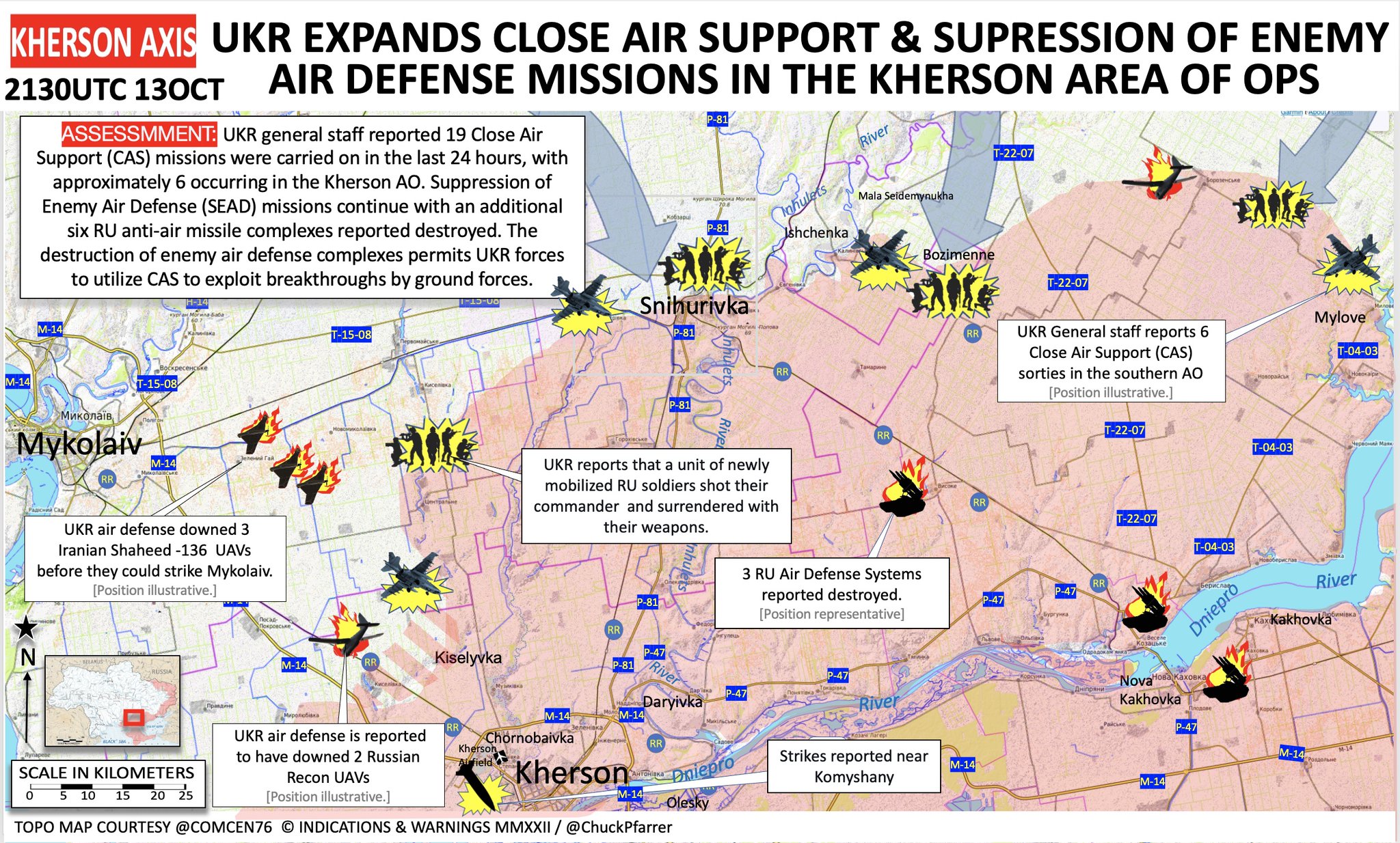 新‧二七部隊 軍事雜談 (New 27 Br... on Twitter10/14. 刻松地區戰況,在過去24小時內,烏軍執行6次空中支援作戰,大部分在刻松防線,同時,烏軍繼續執行壓制俄軍防空作戰,另有6個防空系統被毀